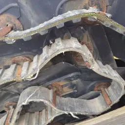 Elevator mat Grimme, niet gescheurd wel teveel rek. Zelf vervangen door een GT elevator mat. Gratis af te halen