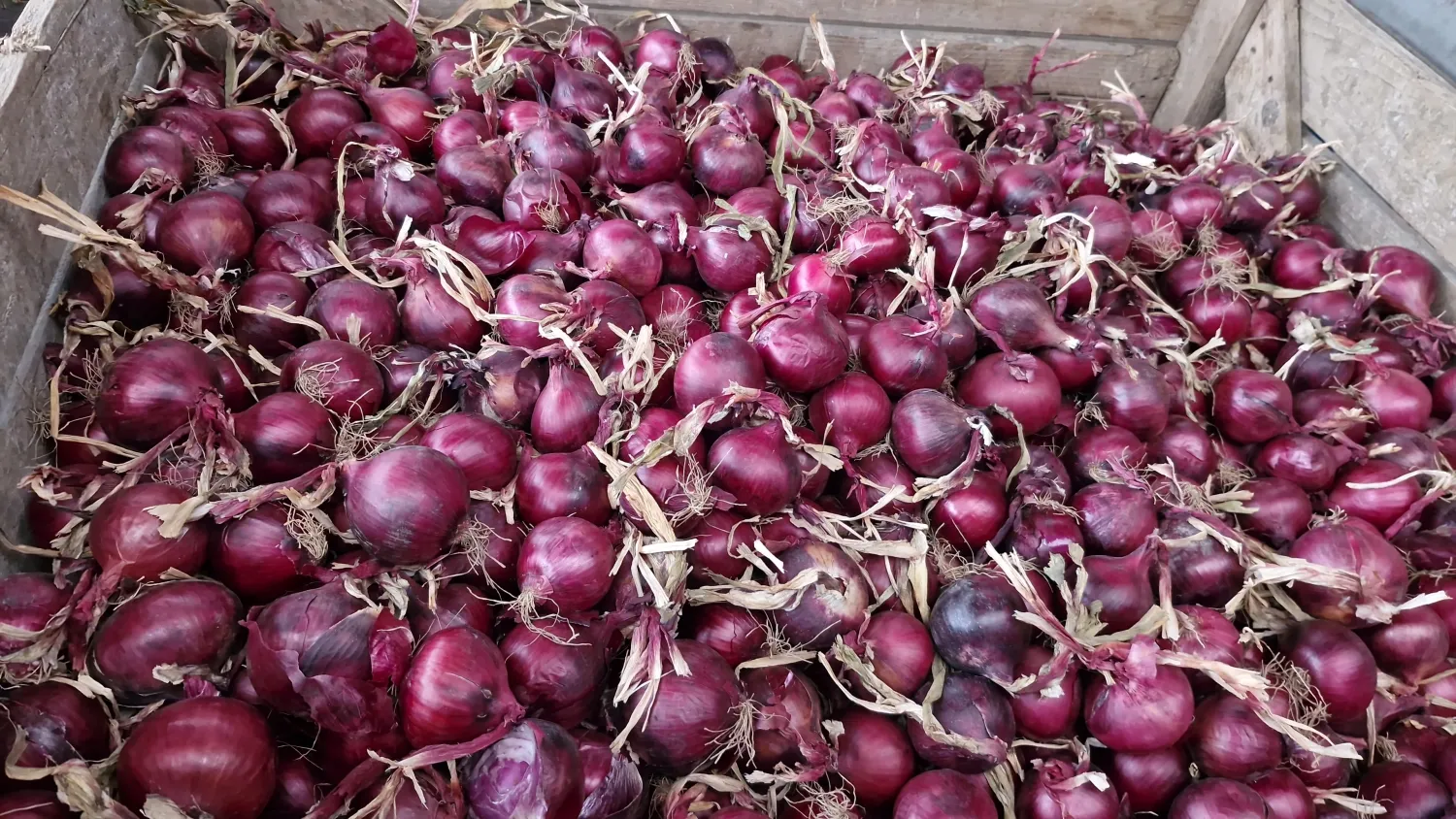 1 vracht rode uien red tide 0-60 Mh gespoten Geen schot Geen fusarium 30 ton