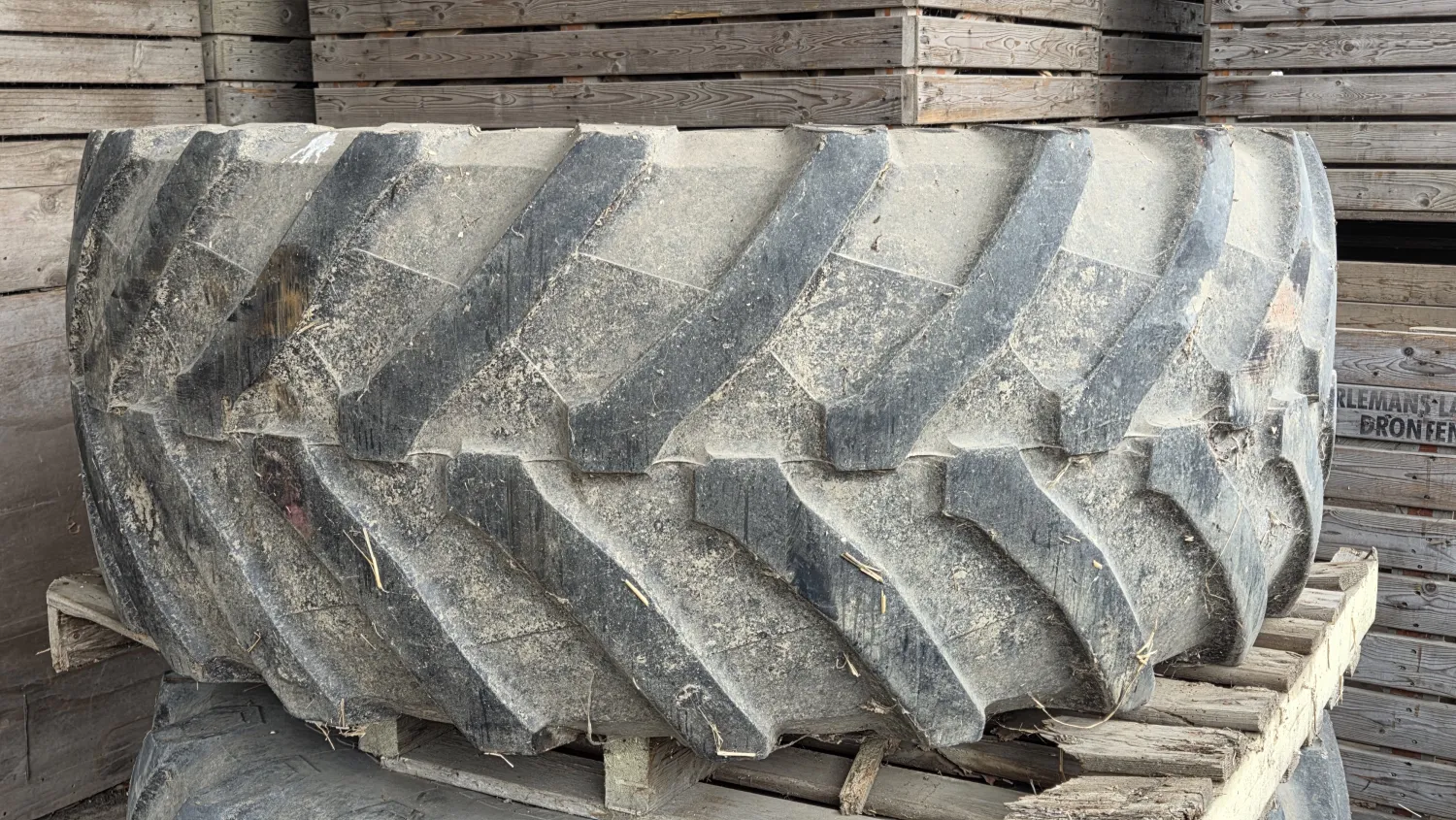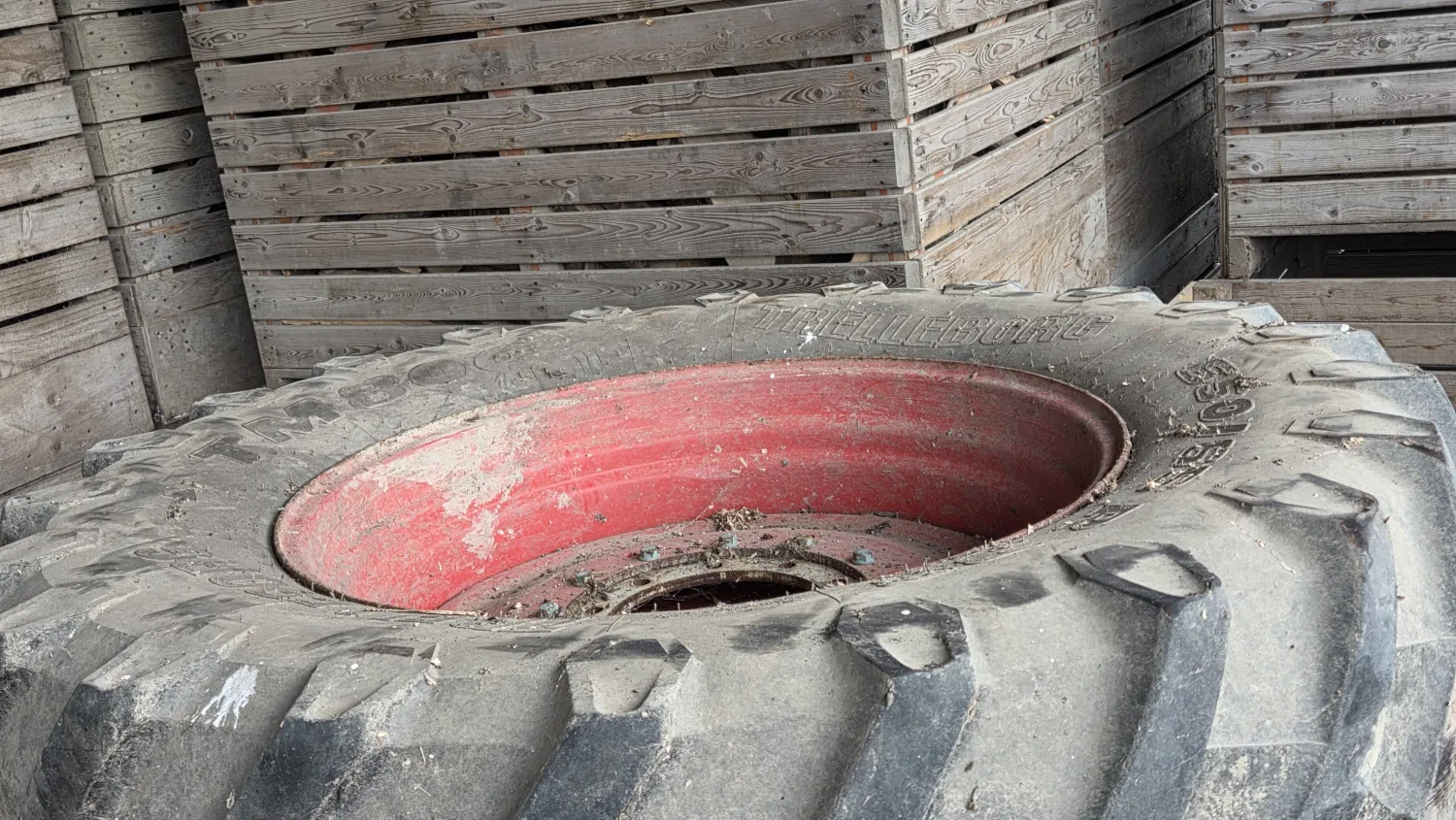 Te koop , trelleborg 650/,65,-38, incl velg met aansluiting verwisselbaar hartstuk. Recht afgesleten,