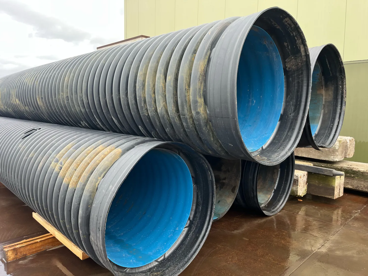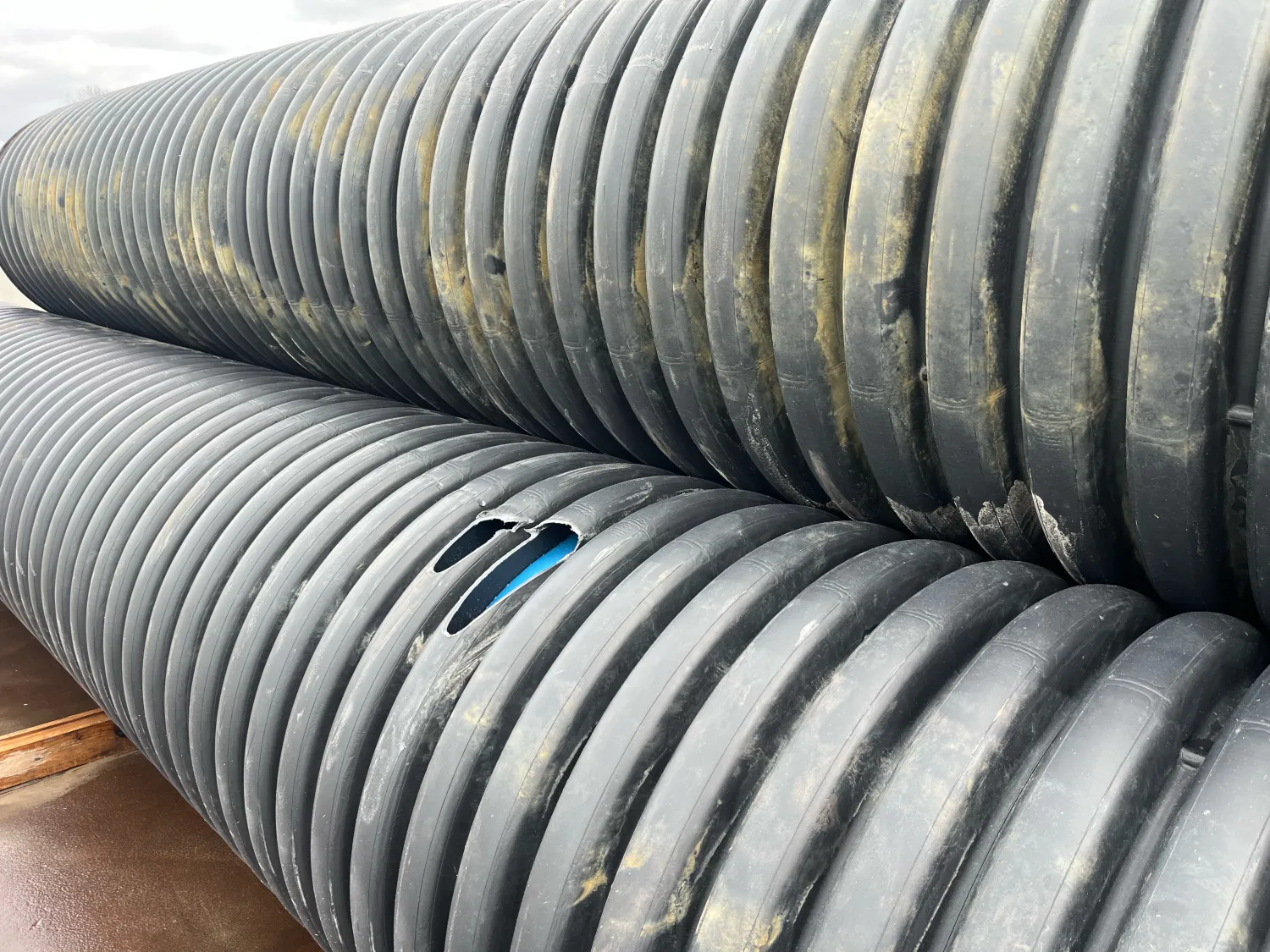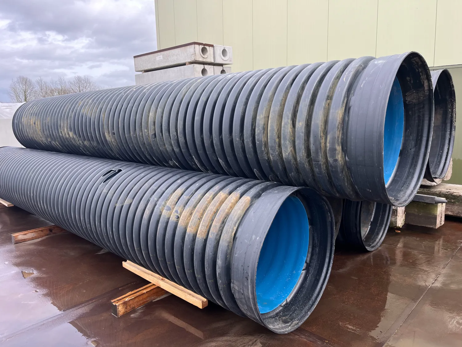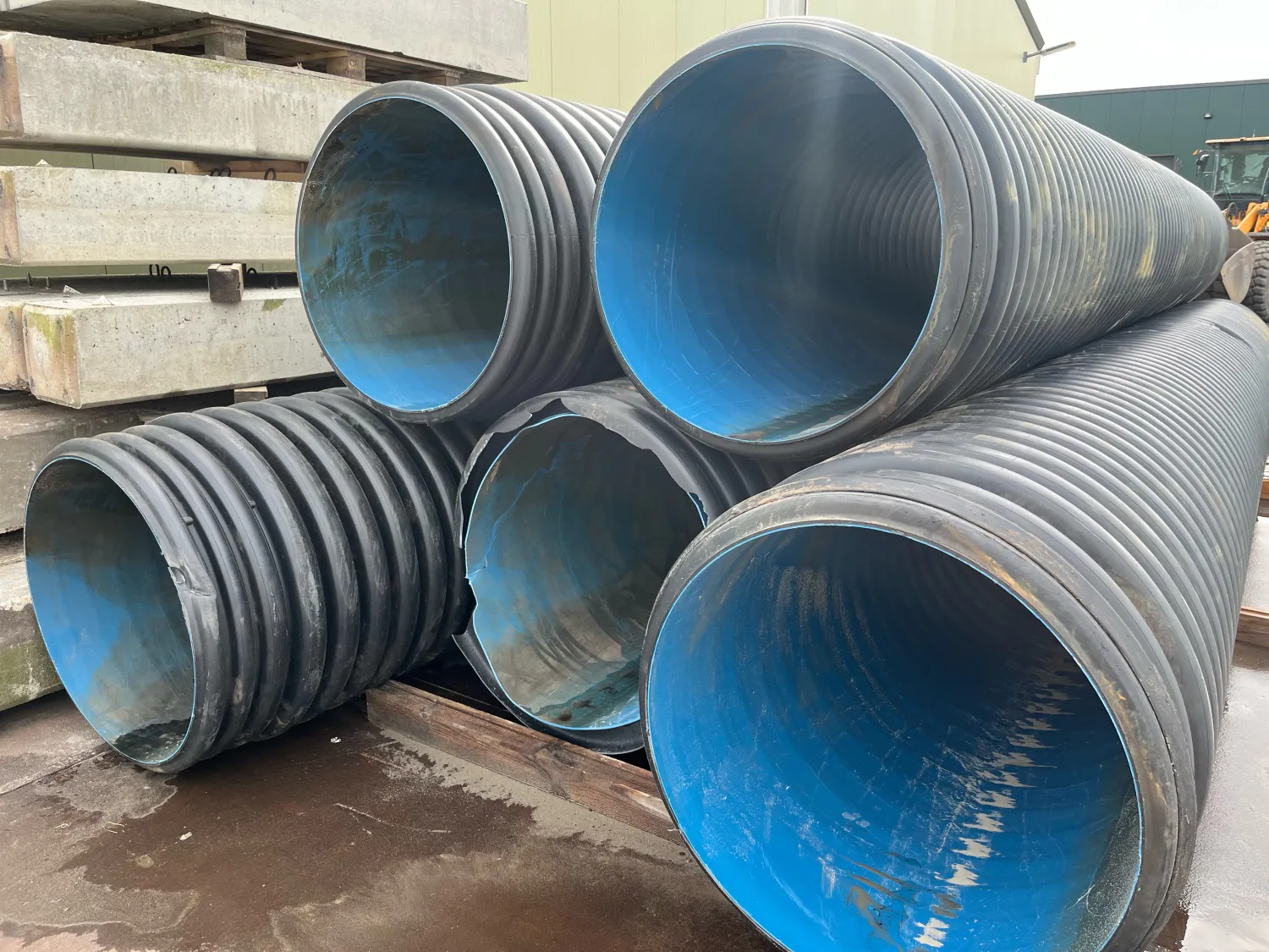 Gebruikte duikerbuis / ribbelbuis Op dit moment ca. 30 meter Maat: 935 x 800 mm Hier en daar wel een beschadiging, wel schoon