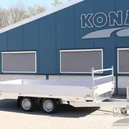 🚛 𝗞𝗼𝗻𝗮𝗴 𝗘𝗮𝘀𝘆𝗹𝗶𝗻𝗲 𝘃𝗲𝗿𝗹𝗮𝗮𝗴𝗱𝗲 𝘁𝗮𝗻𝗱𝗲𝗺𝗮𝘀 𝗽𝗹𝗮𝘁𝗲𝗮𝘂𝘄𝗮𝗴𝗲𝗻 𝘃𝗼𝗼𝗿 𝘀𝗹𝗲𝗰𝗵𝘁𝘀 €𝟮.𝟵𝟵𝟱 𝗘𝘅𝗰𝗹. 𝗕𝗧𝗪. 405×200 cm 2850 kg Standaard uitgevoerd met: - Robuust chassis compleet gelast en volbad verzinkt - Verlaagd chassis met 195/50 R13 banden, geringe laadvloerhoogte van 63 cm - Aluminium borden 30 cm hoog met degelijke klepsluitingen - Lange aspadden voor optimale gewichtsverdeling - Bodemplaat uit een gedeelte 15 mm dik Fins berken kwaliteit voorzien van anti-slip toplaag - Neerklapbare borden - Sjorhaken geïntegreerd in de zijrand - Bindhaken aan onderkant zijrand-chassis - Geschroefde V-dissel - Verzwaard steunwiel gemonteerd aan de dissel Deze aanhangwagen is in onze outlet super scherp geprijsd van 4399 euro voor slechts 2995 euro excl btw. Op=op!