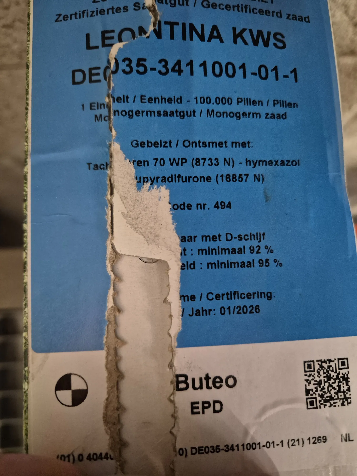 Leontia kws met buteo 2026 1,5 pak,zijn open geweest als restzaad in zaaimachine.