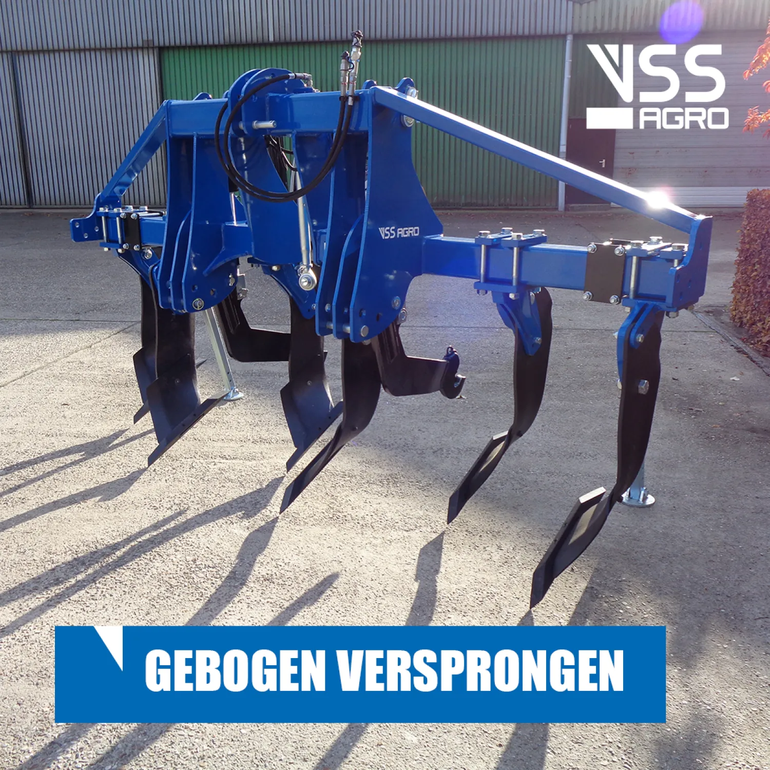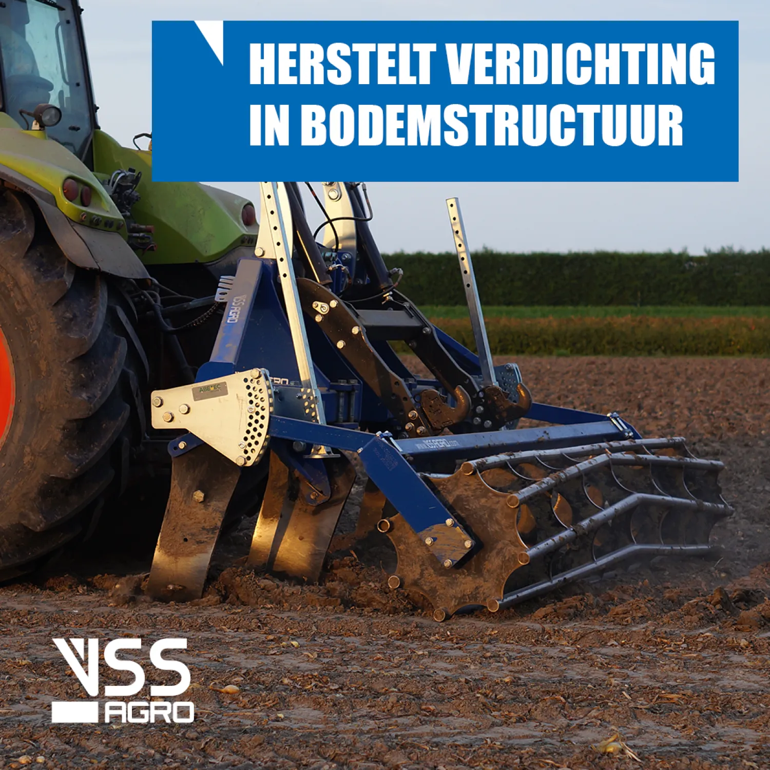 VSS AGRO VOORZETWOELER: UW BODEMSTRUCTUUR IN OPTIMALE CONDITIE De VSS Agro Voorzetwoeler (MTO-U) brengt uw bodemstructuur weer in topconditie en is te gebruiken met tractors met een vermogen tot 200 pk. Door het robuuste ontwerp en de grote vrije ruimte onder de balk vormt bewerking van 15 tot 40 cm geen probleem. Dankzij de grote bodemvrijheid is een combinatie met andere werktuigen goed mogelijk. In het midden is ruimte voor een tussenas t.b.v. gebruik met aangedreven werktuigen. Het enkelbalks-concept maakt het mogelijk om de voorzetwoeler als tussenmachine te gebruiken, in combinatie met bijv. een rotorkopeg. MTO-UCV6 IN HET KORT - Werkbreedte: 3m - 6 gebogen woelpoten, versprongen gemonteerd - Mechanische hef, cat. III vanghaken - Mogelijke opties: hydraulische hefinrichting, buizenrol in Ø 620 mm of Ø 700 mm, andere groottes moorbeitels, hydraulische slangendoorvoer Andere varianten ook mogelijk. Vraag naar de mogelijkheden via info@vssmachinebouw.com of bel 0113 – 567 050.