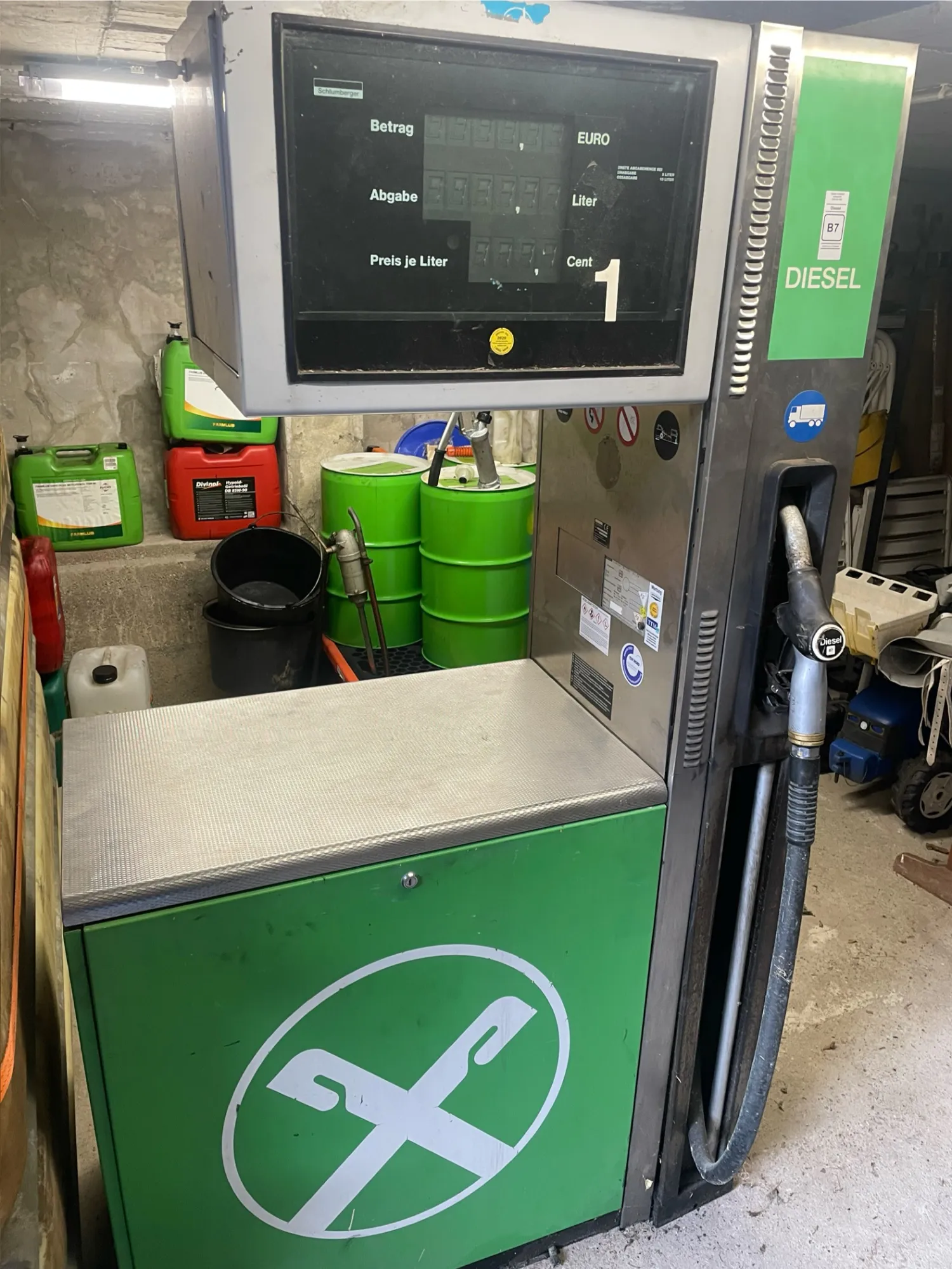 LKW Zapfsäule 150l/min Verkaufe hier eine professionelle Diesel-Zapfsäule für LKW. Die Zapfsäule bietet folgende Eigenschaften: • Förderleistung: 150 Liter pro Minute • Geeignet für Diesel-Kraftstoff • Robuste Bauweise für den gewerblichen Einsatz • Display und Bedienelemente vorhanden Die Anlage wird als Bastlerobjekt verkauft, da die Freigabe von der Tankstelle fehlte. Mir fehlte die Zeit die Chip Freigabe zu Überbrücken. Zapfsäule lief bis zum Schluss an der Tankstelle. Da nicht mehr benötigt wird sie jetzt Verkauft. Anbei ein 2000l Tank. Perfekt für Werkstätten, Speditionen oder private Sammler von Tankstellentechnik. Bei Fragen melde dich gerne. Keine Garantie oder Gewährleistung 500€ netto