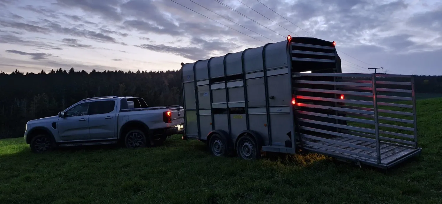Tiertransporte nach EU-Verordnung 1/2005 – Sicher & zuverlässig Ich biete professionelle Tiertransporte gemäß der EU-Verordnung (EG) Nr. 1/2005 an. Ob kurze Strecke oder Langstrecke – der sichere, stressarme und gesetzeskonforme Transport Ihrer Tiere steht bei mir an erster Stelle. Was ich anbiete: ✔️ Tiertransporte innerhalb Deutschlands und ins angrenzende Ausland ✔️ Transporte nach EU-Normen (1/2005) ✔️ Sachkundenachweis gemäß VO (EG) 1/2005 vorhanden ✔️ Modern ausgestattetes Transportfahrzeug ✔️ Regelmäßige Pausen, Versorgung & Kontrolle der Tiere ✔️ Individuelle Planung & flexible Termine Geeignet für: Schafe (ca. 35-40stk) je nach Gewicht und Wolle Schweine (20stk bei 120kg Gewicht) Kühe/Bullen: Endmast 2-3 (ca. 600kg/Tier) Absetzer 6-8 stk Kälber ca. 50kg 15-16Stk Kälber ca. 110kg 9-10Stk Kälber ca. 200kg 6-10Stk Die Anzahl der zu Ladenden Tiere ist Abhängig von den Gewichten, Der Verfassung und vorallem von der Aktuellen Wetterlage. Abholung/Bringservice zwischen Züchte