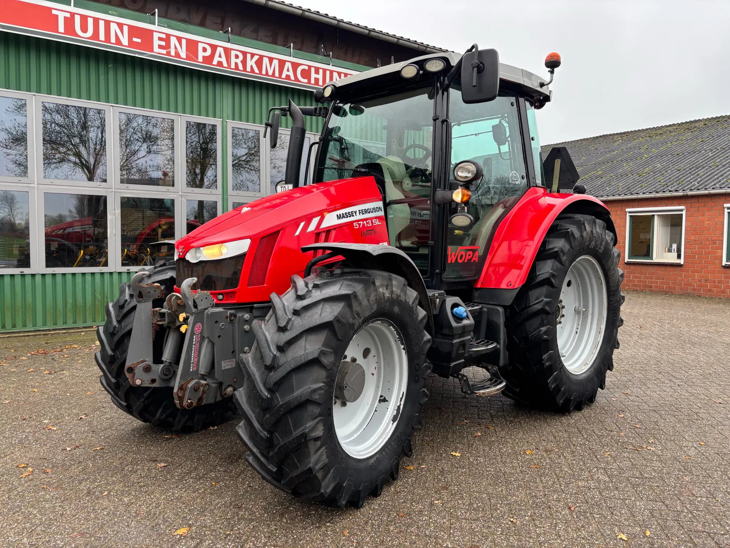 Massey Ferguson 5713SL Dyna-6 - 130 PK - 5985 draaiuren - Maximum rijsnelheid 43 km/h met autodrive - Fronthef en frontaftakas - 4x DW ventiel 2x mechanisch en 2x elektrisch bediend - Load Sensing - Airconditioning - 540 - 540E - 1000 PTO - Hydraulisch aanhangremventiel - Luchtremmen - 480/65R28 Trelleborg TM800 50% - 600/65R38 Trelleborg TM800 50% - Kieperknobbel & boventrekhaak inbegrepen - Volledige onderhoudshistorie bekend Afgebeelde GPS, portofoon en dubbelluchthaken worden bij verkoop afgebouwd