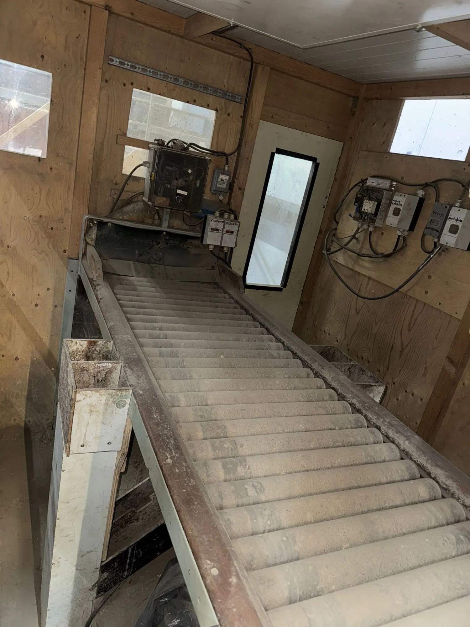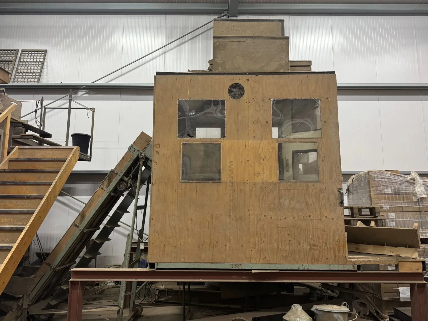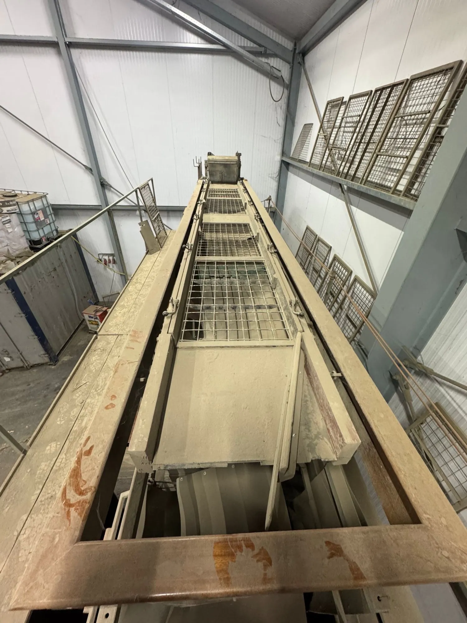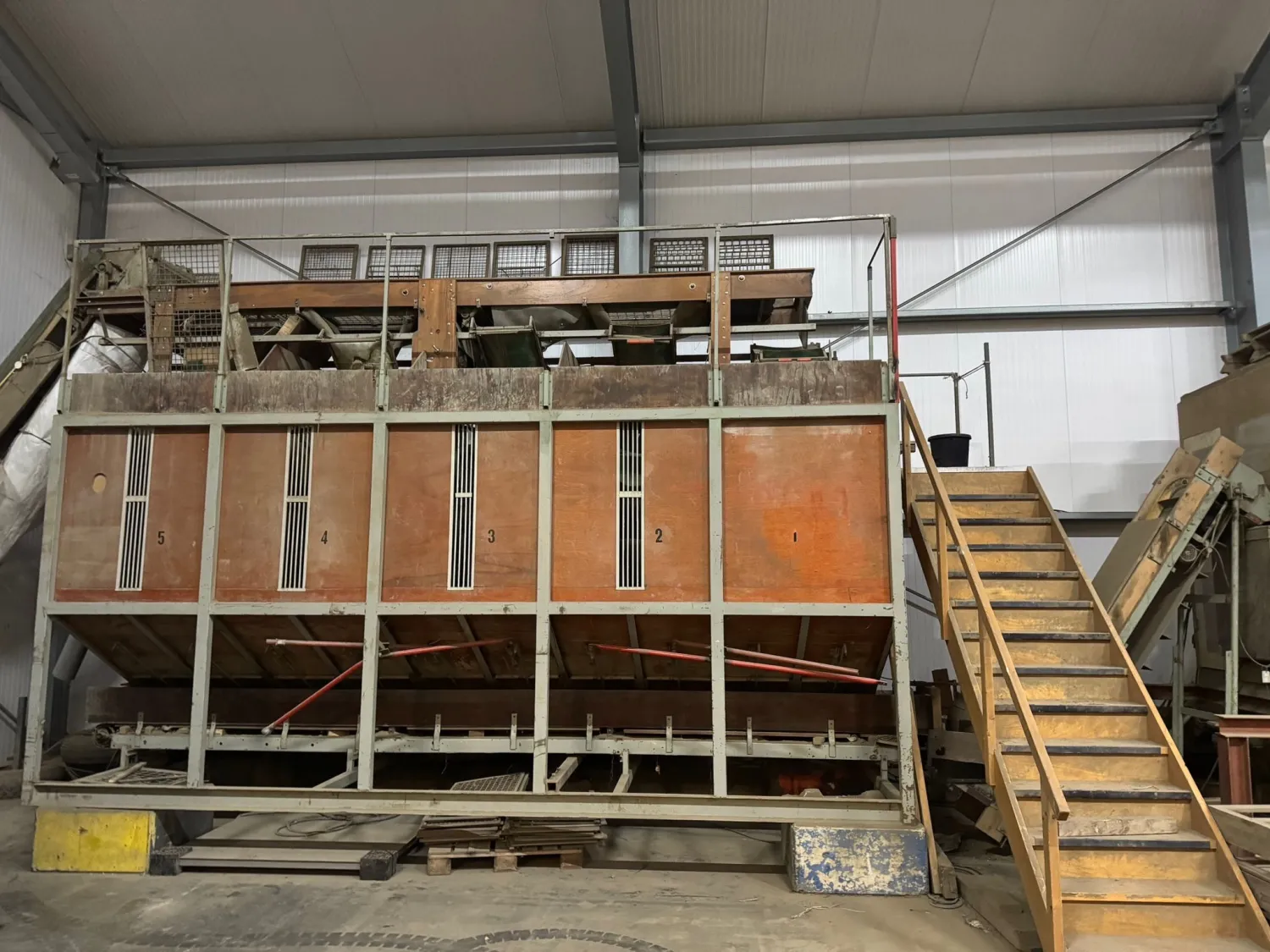 Aardappel sorteermachine 5 bunkers van 3,63m3 elk. 3,86 breed, 5,73 lang. Leeskamer 4m lang,3,42 breed. Opvoer elevatoren incl Veelvoud aan sorteerplaten.
