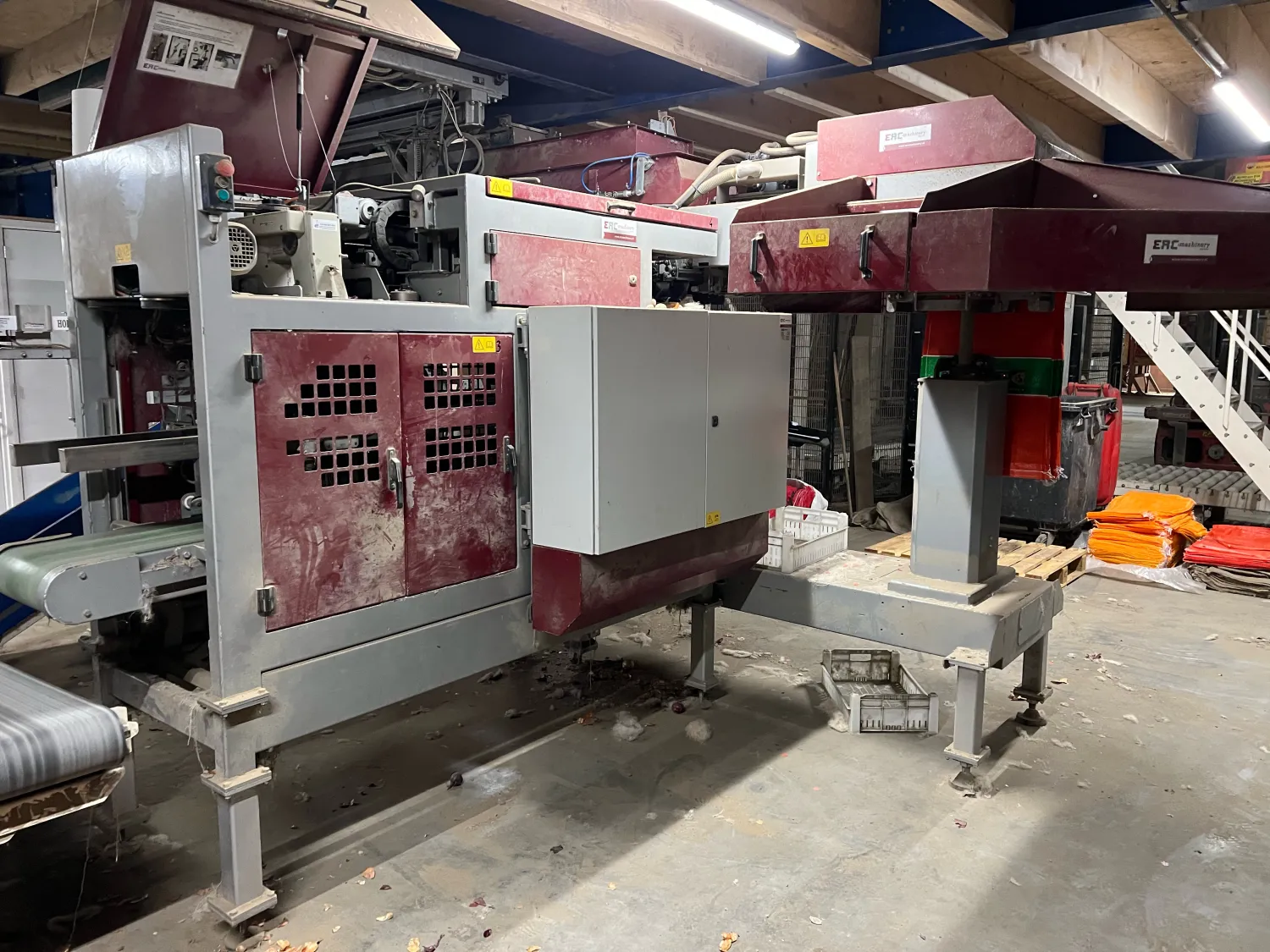 Verpakkingslijn - Manter 10000L 10 baks weger bouwjaar 2003 - Erc baxmatic 2009 - Geschikt voor 50kg - Erc naaistraat 2012 pb800 - met kaart automaat en lint invoer