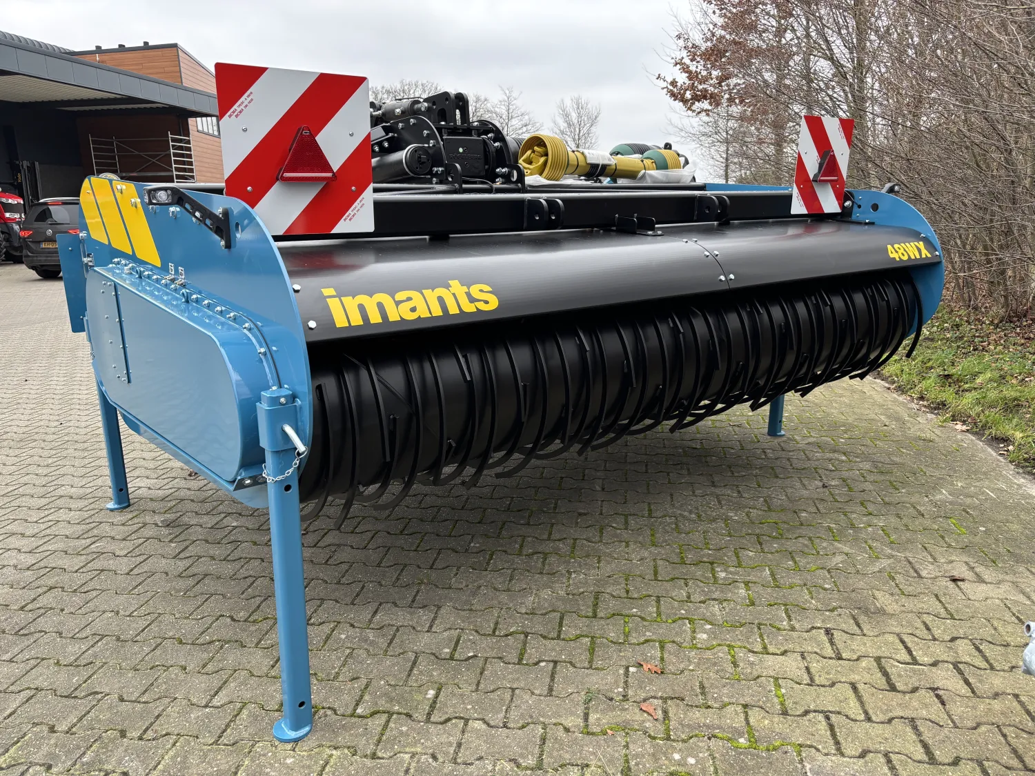 Nieuwe Imants 48WX300H spitmachine uit voorraad leverbaar! *Bouwjaar 2026 Standaard uitvoering: - Benodigd vermogen 150 - 300 PK - 15 tot 35 cm werkdiepte - Toerental aftakas 1000 tpm - Ideale rijsnelheid 7 km/h - Aanspanning CAT 3 - Aangedreven harkrol - Werkbreedte 3.00 meter - 6 rondsels - 30 stuks WX snelwissel spadebladen - 48WX300H heeft 5 woelpoten met een tussenafstand van 57,0 cm - LED verlichtingsset - Walterscheid aftakas (Nokkenkoppeling zit op horizontale aftakas) - Hydraulische roldrukregeling. *Tegen meerprijs leverbaar met hydraulische hefinrichting. Prijs op aanvraag. Neem contact met ons op voor meer informatie of een bezichtiging.
