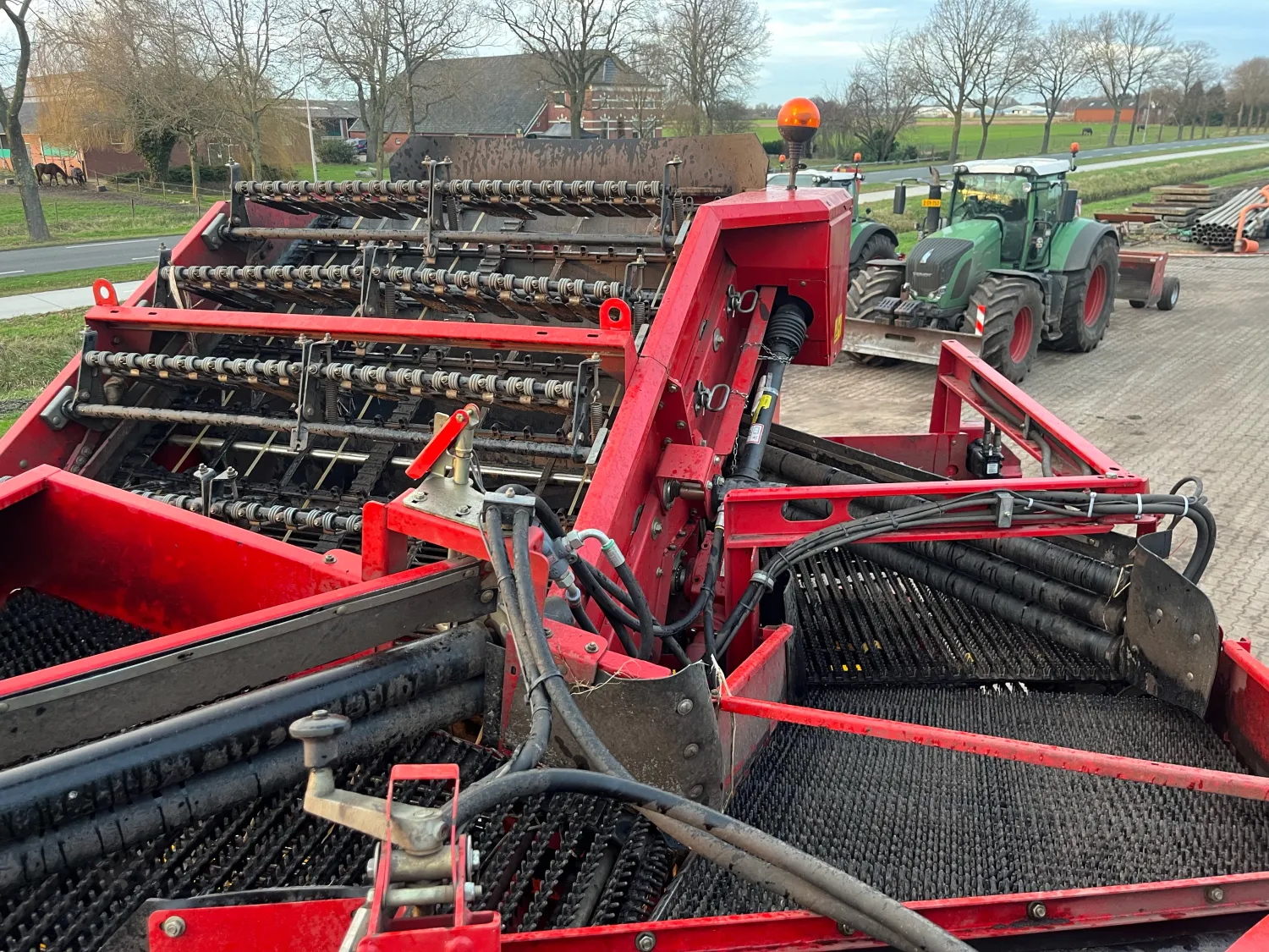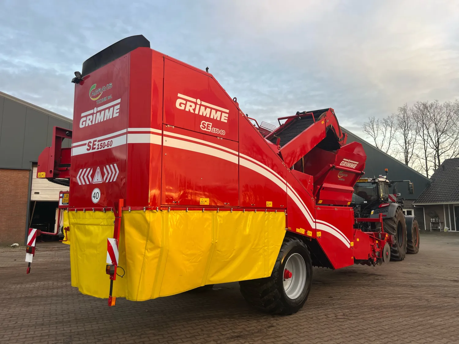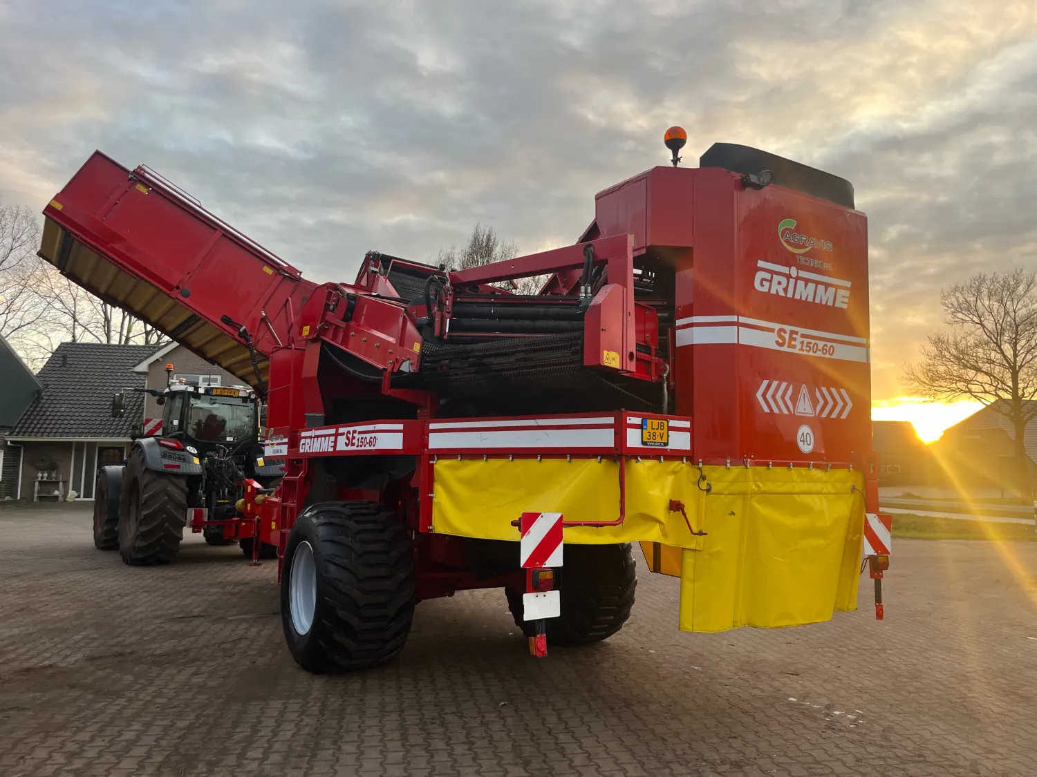 Zeer nette Grimme SE150-60 xxl. Bj 2013 is nieuw bij ons gekomen en zeer goed onderhouden. Alle matten incl bodemketting en slijtdelen recent vervangen. Volledige bek en 3e schijf buitenkant. Rijdend lossen leesband. Alles verstelbaar vanaf computer. Banden 800/45R30.5. Camera/lampen op egelbanden, leesband, achterop, kop bunker. Machine is draaiend te zien, zit nog achter de trekker. Kan gekocht worden zoals gezien of compleet nagezien.