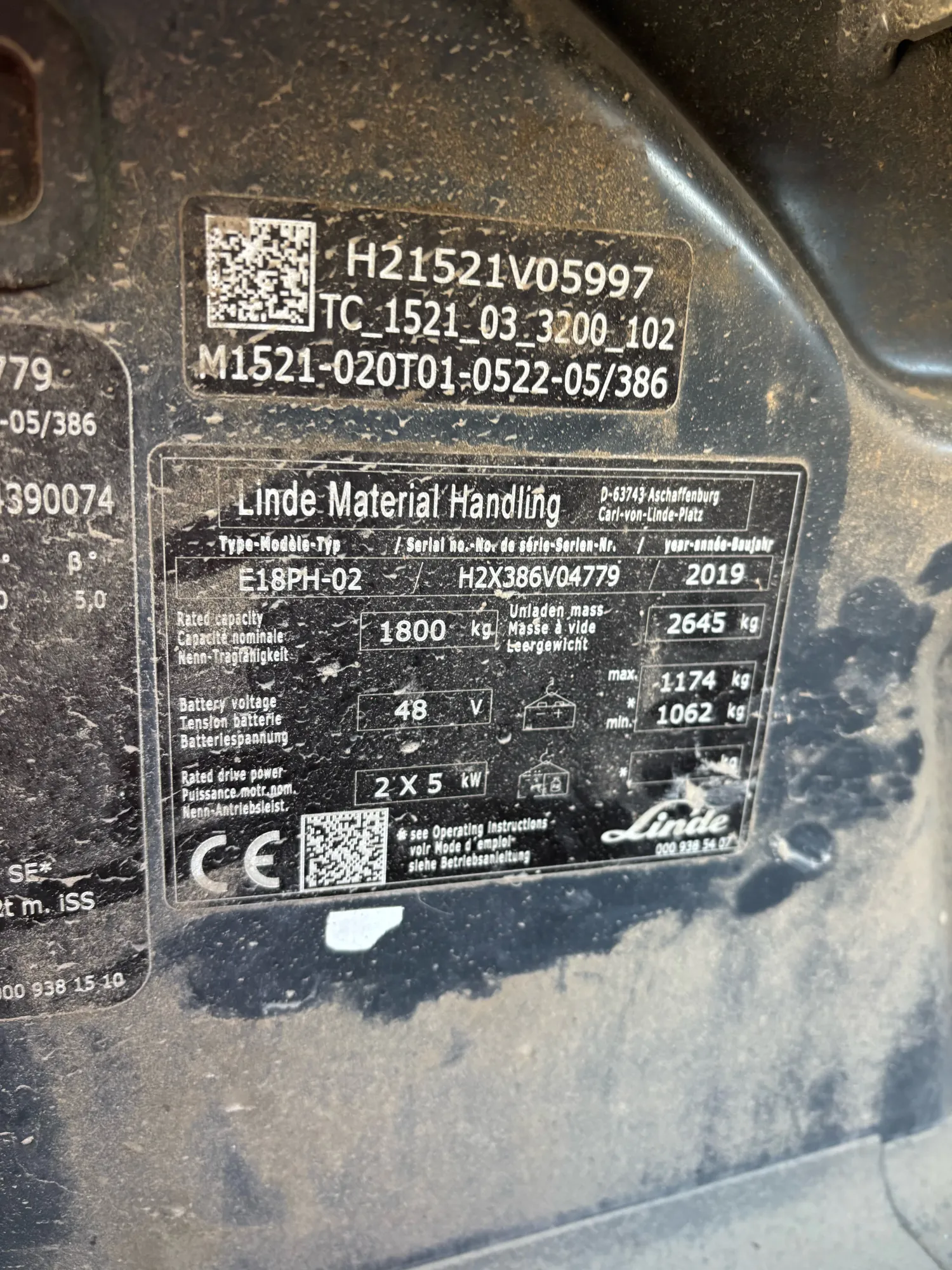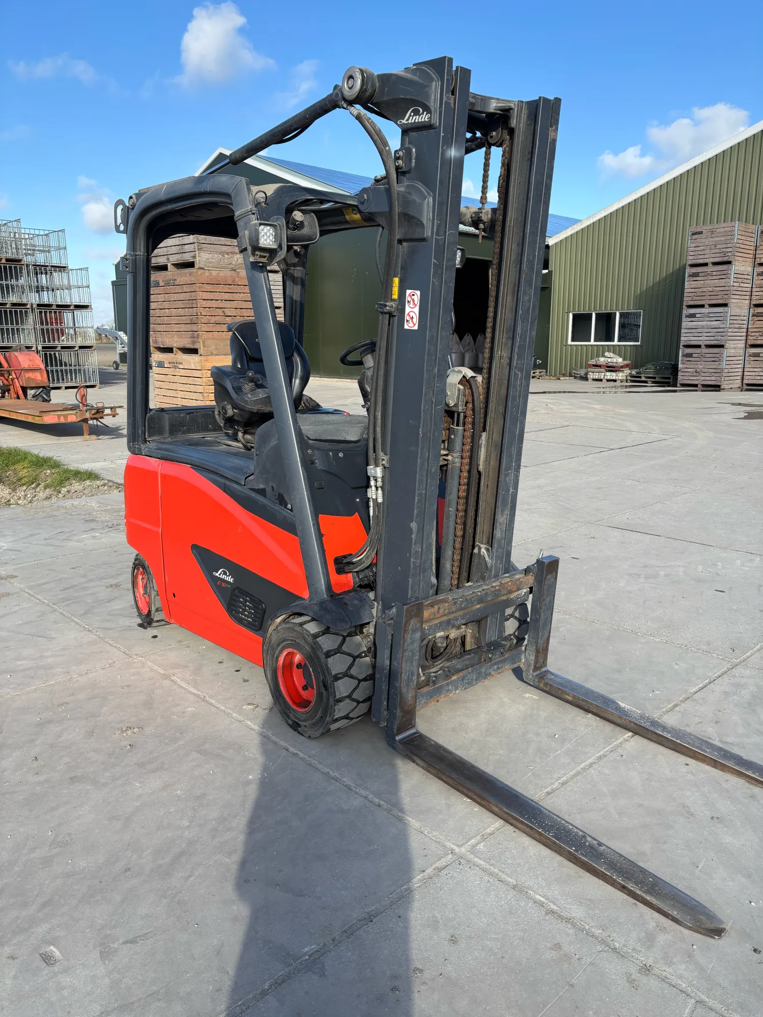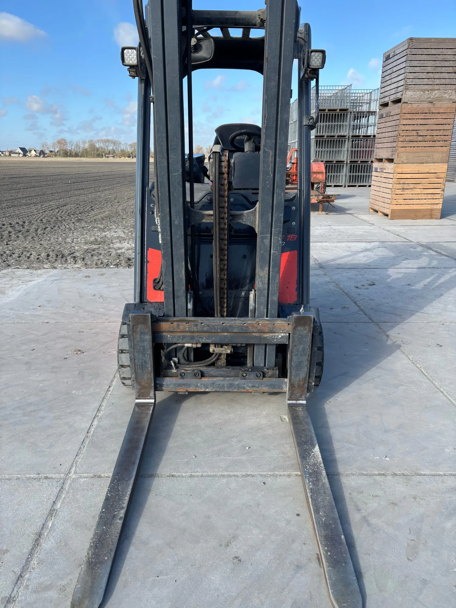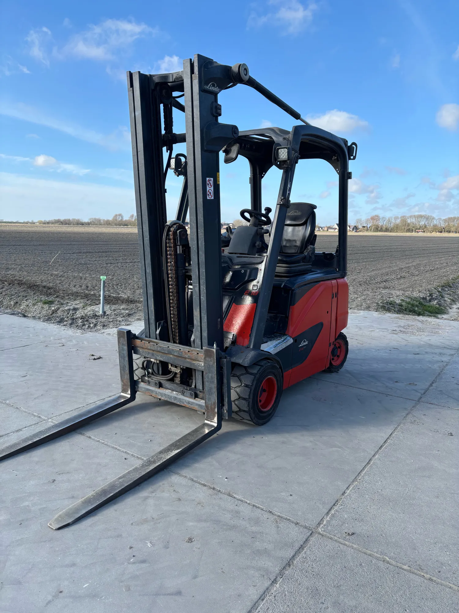 Linde E18ph-02 - dubbele pedalen - 1.20 lepels - side-shift - stoelverwarming - blue spot - led verlichting - triplex mast - achteruitkijkspiegel - +\- 7000 uur
