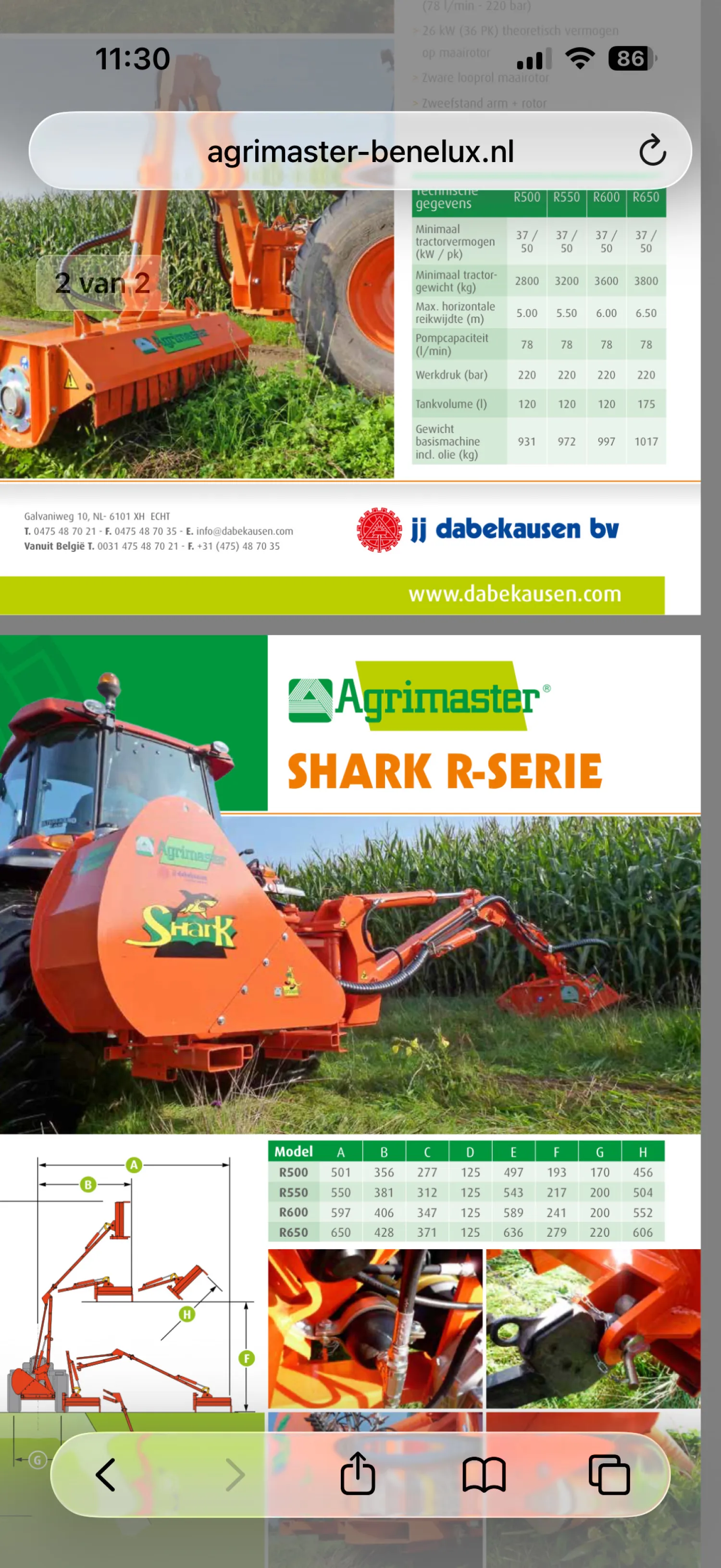 Gebruikte Agrimaster armklepelmaaier Shark R 550 T 125 Bouwjaar 2016 met hamerklepels