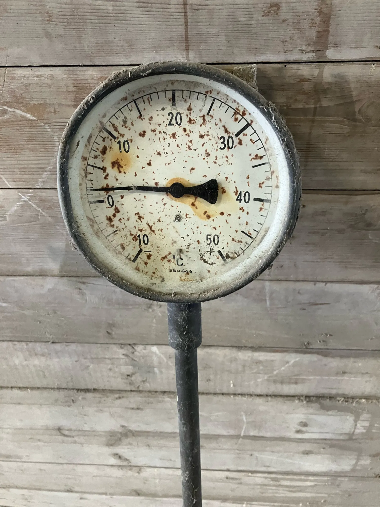Steek thermometer voor de bietenbult. Doet wat ie moet doen en dat is temperatuur aangeven. Geen wifi dus China kijkt niet mee. Hangt in Espel. Even appen voor de prijs