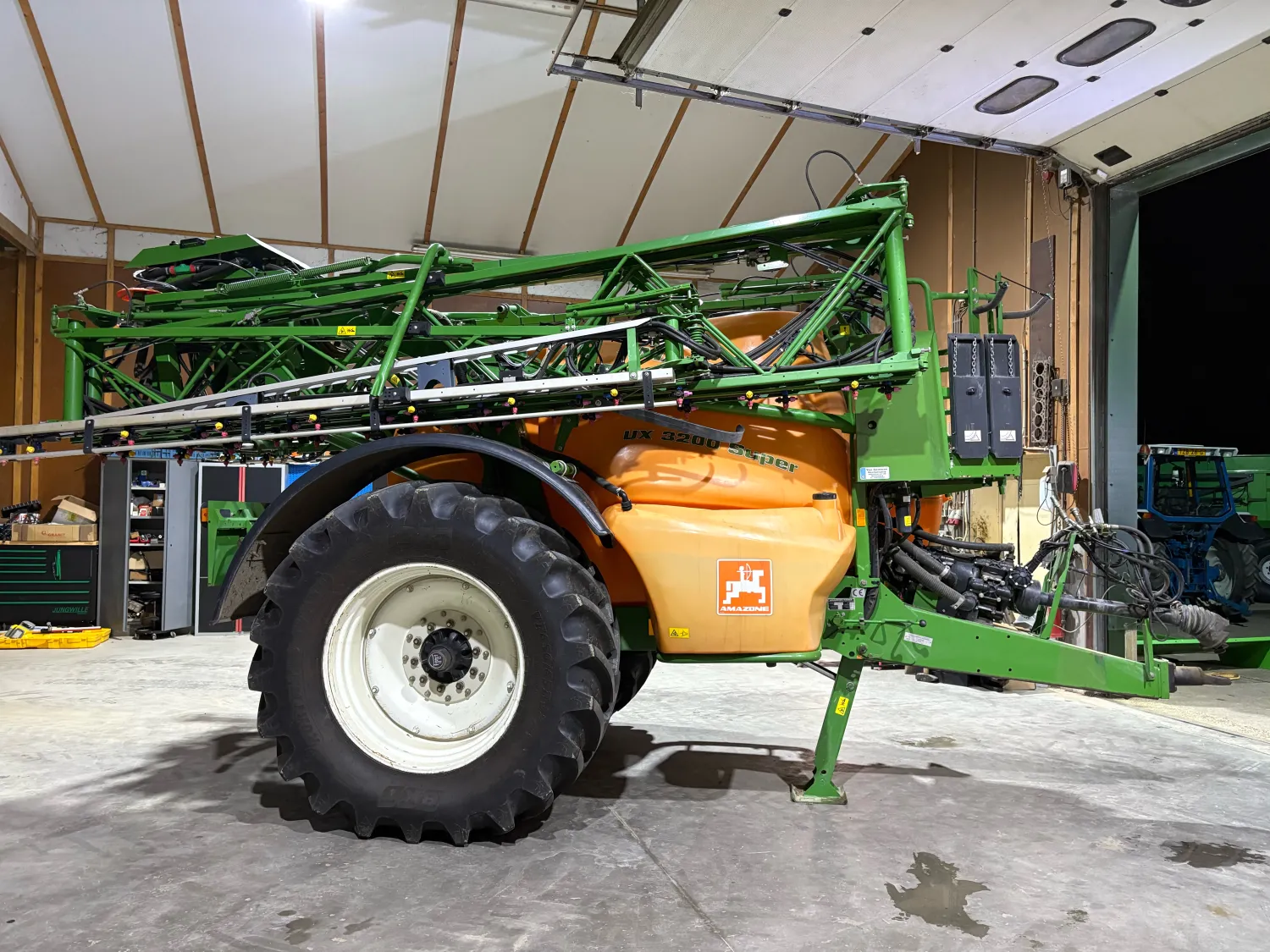 Amazone UX3200 Super Veldspuit Bouwjaar 2011 Werkbreedte 33 meter 4 delige boom, klapt terug naar 27,21 en 12 meter 4 ling dophouder, met oa Airmix 110/04, 110/05 en TDXL 120/05 Fustreiniger en schoonwatertank Vulslang met zuigkorf Hydraulische steunpoot Automatisch sturende Autotrail achteras, spoorvolgend Nieuwe banden BKT VF 650/65R38 Automatische sectiecontrole met 11 secties op 3 meter GPS Switch display voor sectiecontrole, Amatron+ display voor spuitbediening Joystick en bekabeling voor 1 trekker Pompen afgelopen winter preventief gereviseerd Voorzien van Drukregistratie systeem Per direct beschikbaar, wegens overcompleet