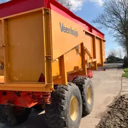 Te koop: Kipper Veenhuis 13000 goed onderhouden met nieuwe kiepcylinder en nieuw trekoog. Met hydraulisch achterschot. Bouwjaar 1990. Bandenmaat 525/65 R20. Met kenteken.