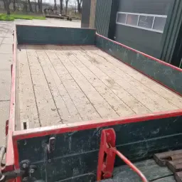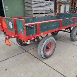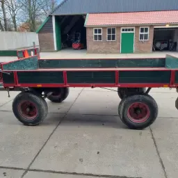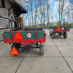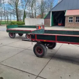Twee plattewagens/boerenwagens met hooi/stroo hekken. in goede staat en netjes onderhouden.