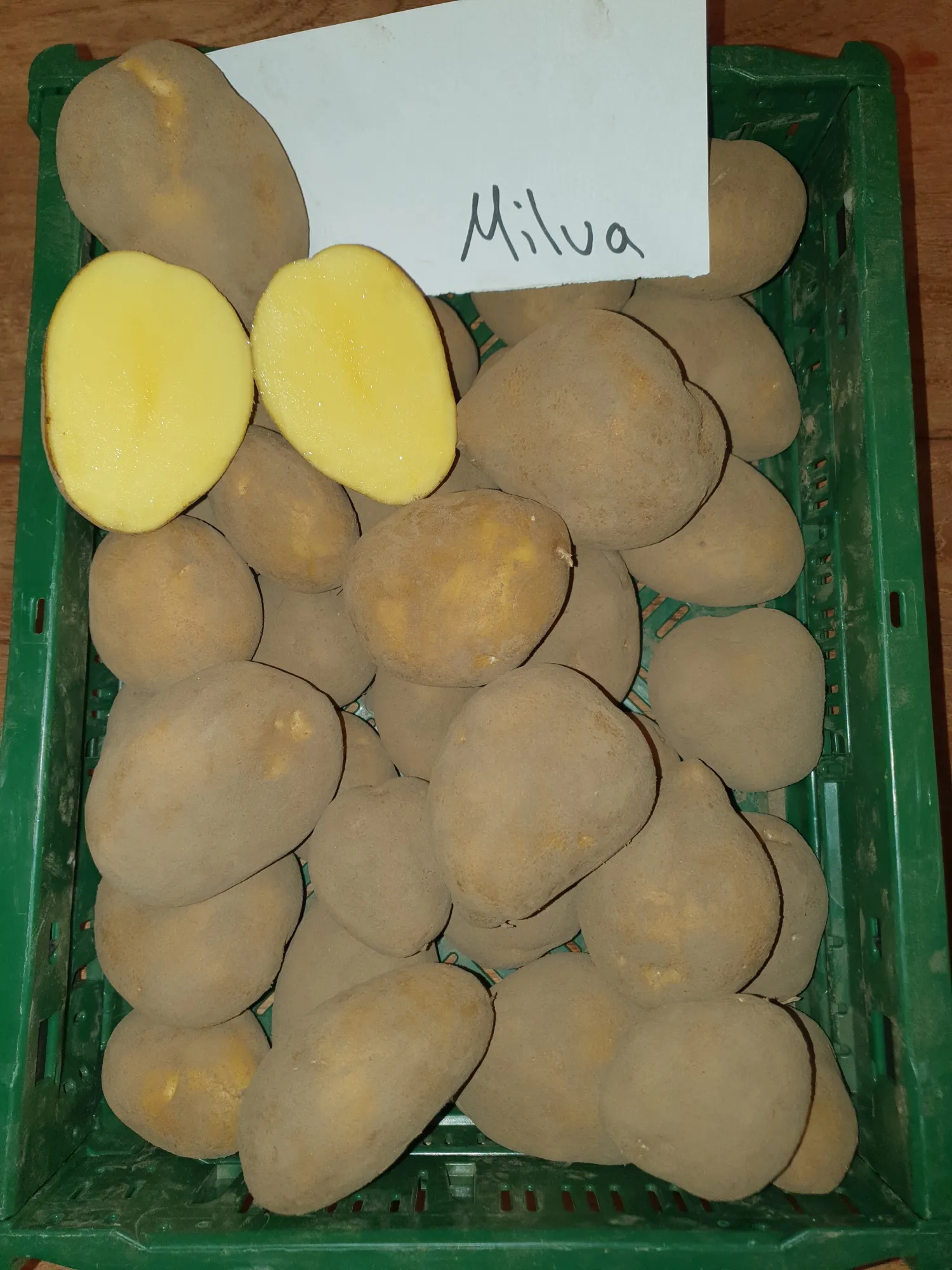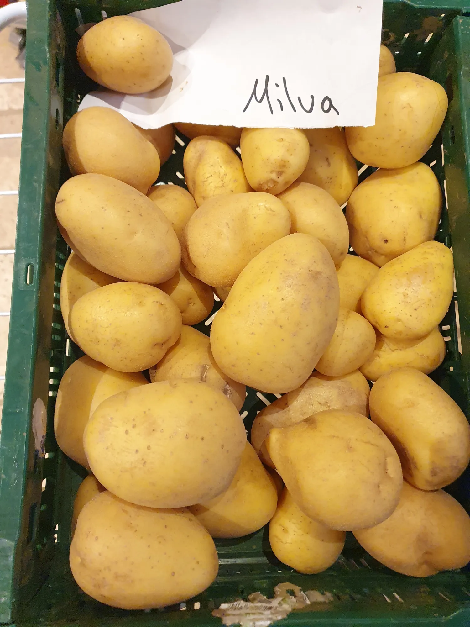 Sehr schöne Milva Speisekartoffeln vom Lehmboden. Top Waschbild. Ca. 160t. Gelagert in Holzkisten, Kühllager. Sortierung 35+. Preisvorstellung sind 12 Euro/dt abgeholt. Nur lose.