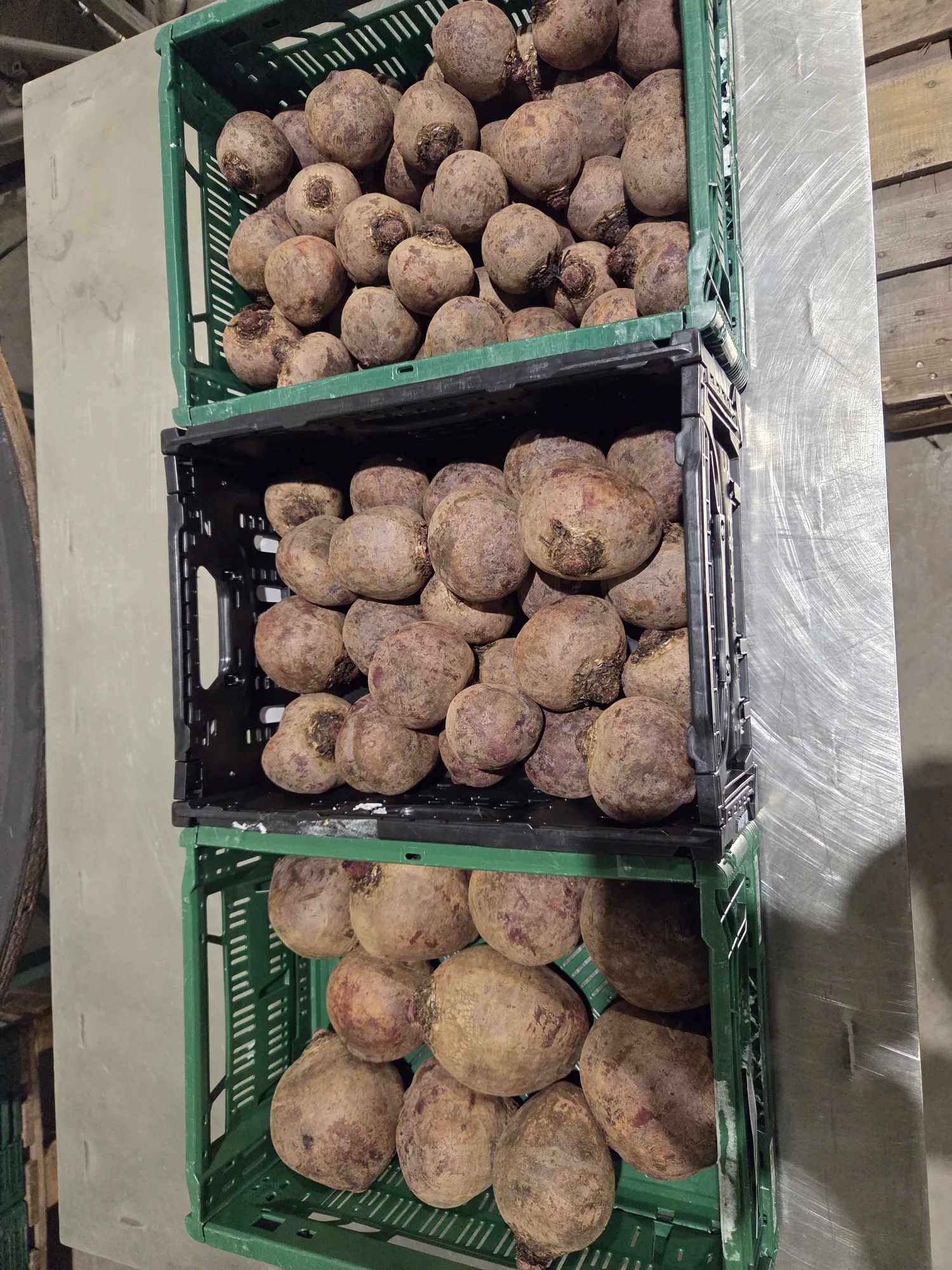 Runde rote Bete. Je nach Wunsch: unsortiert, kalibriert, gewaschen, geschält, gekocht & vakuumiert. Kaliber von 25-130 mm Sorte: Pablo