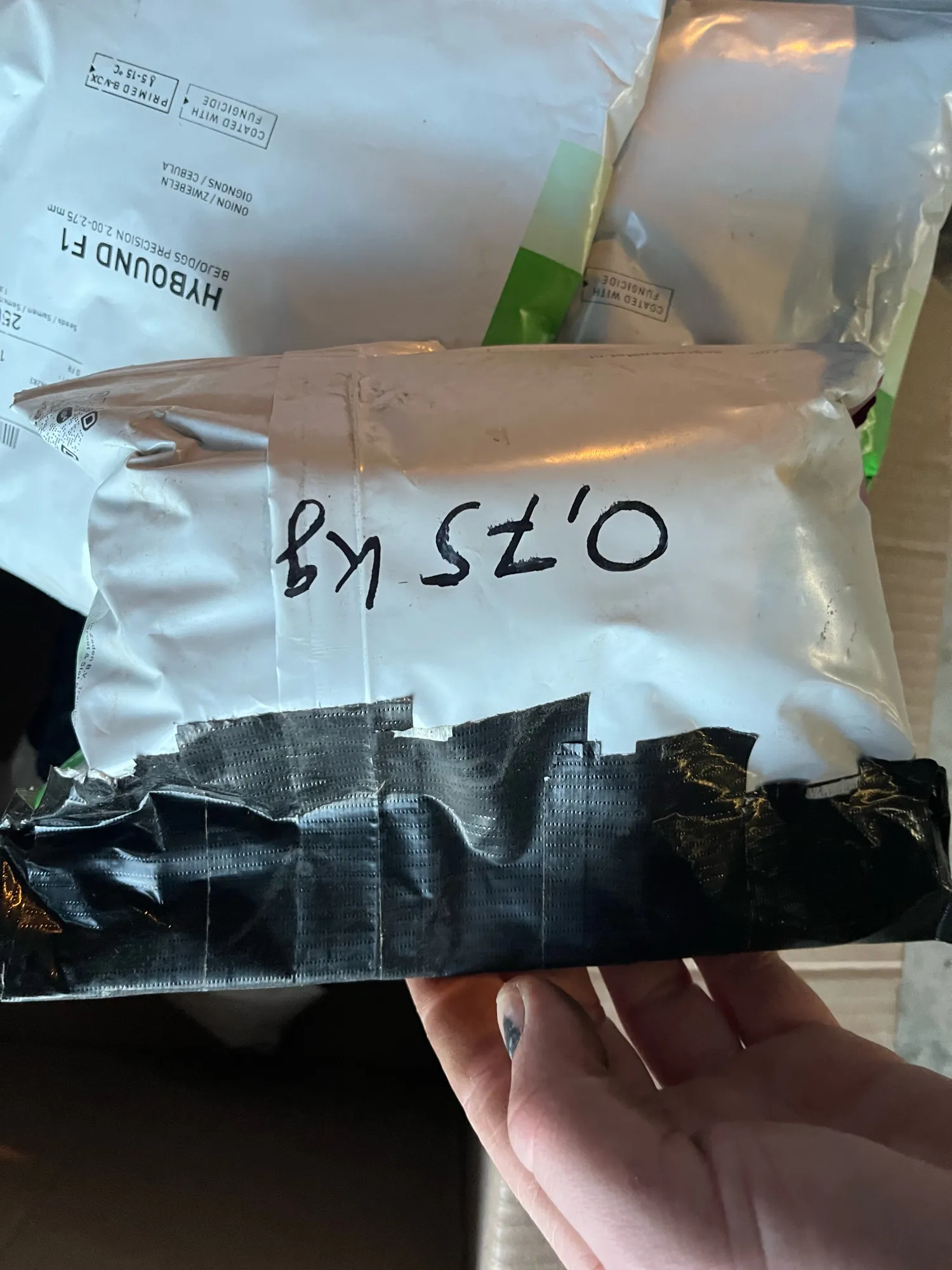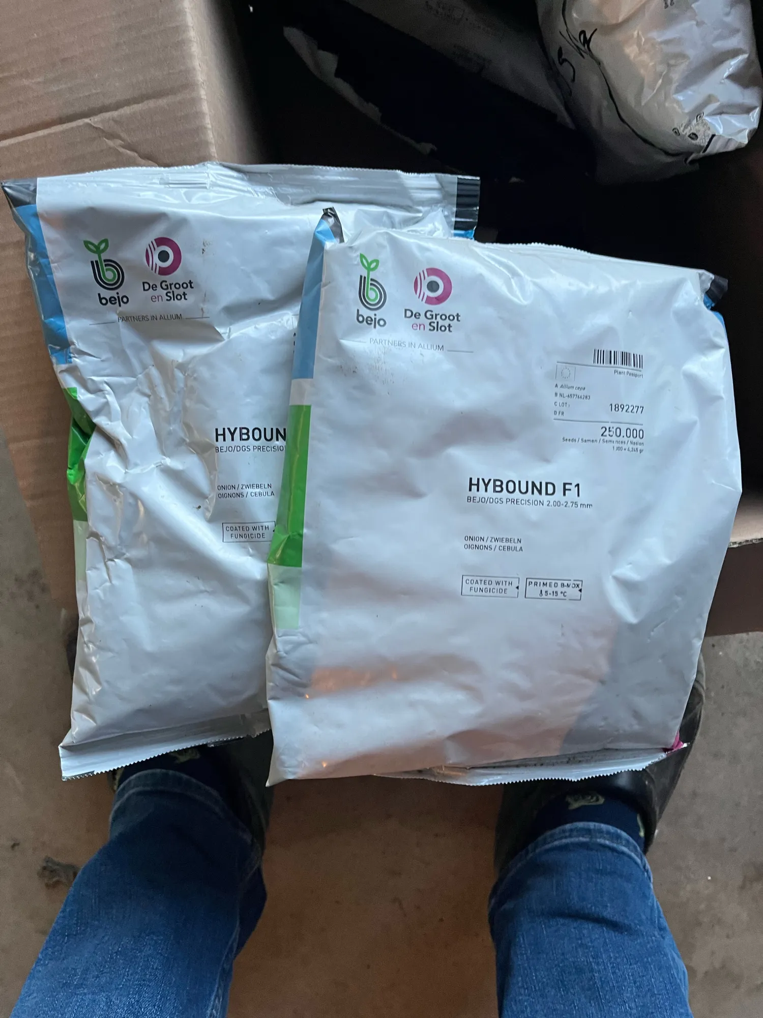 Uienzaad te koop! Bijna 5 eenheden Hybound van 2025, geprimed en goed bewaard. 2 eenheden dicht. Halve eenheid roze Top01 uienzaad, niet geprimed, van 2026