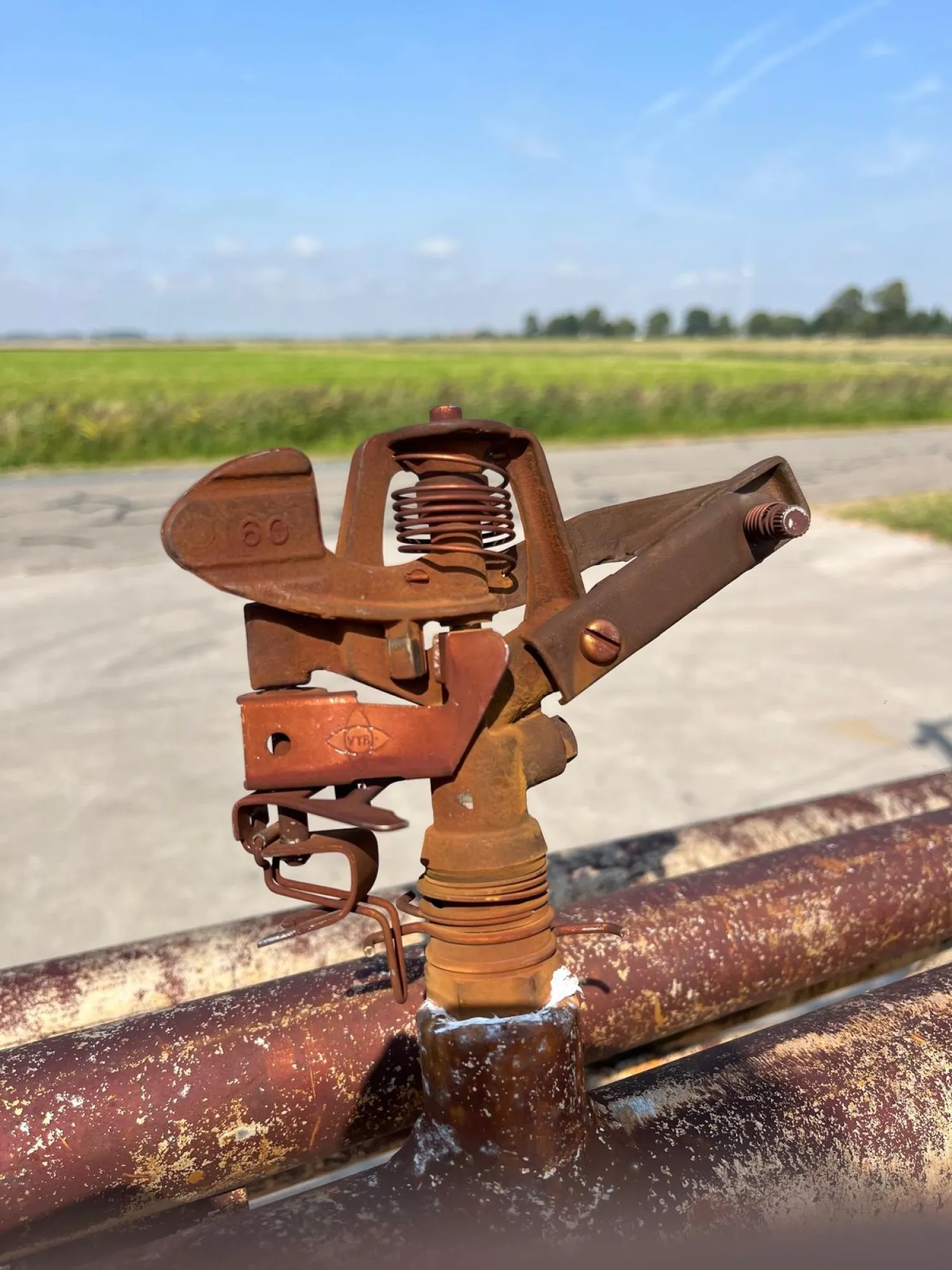 Te koop aangeboden Goldenrain Beregeningsboom - Werkbreedte 40 meter - Voorzien verstelbaar wielstel - Voorzien van klepelsproeiers - Mechanische opklapbaar Prijs €1750,- ex btw Voor meer informatie of eventueel transport Bart 06 19020774 BM In en Verkoop Teenstraweg 5 9885ta Lauwerzijl