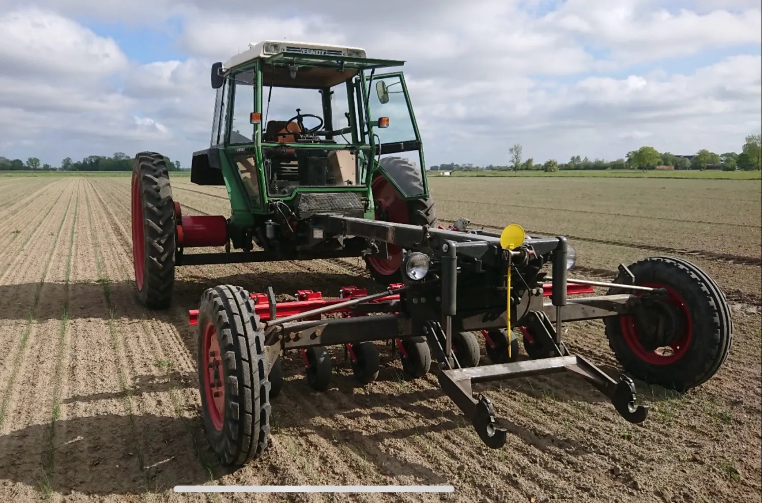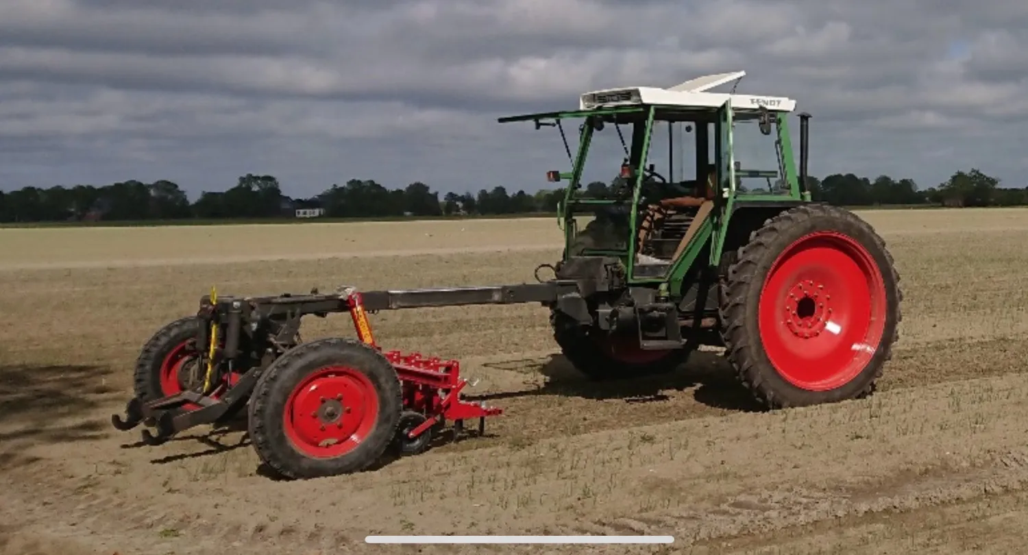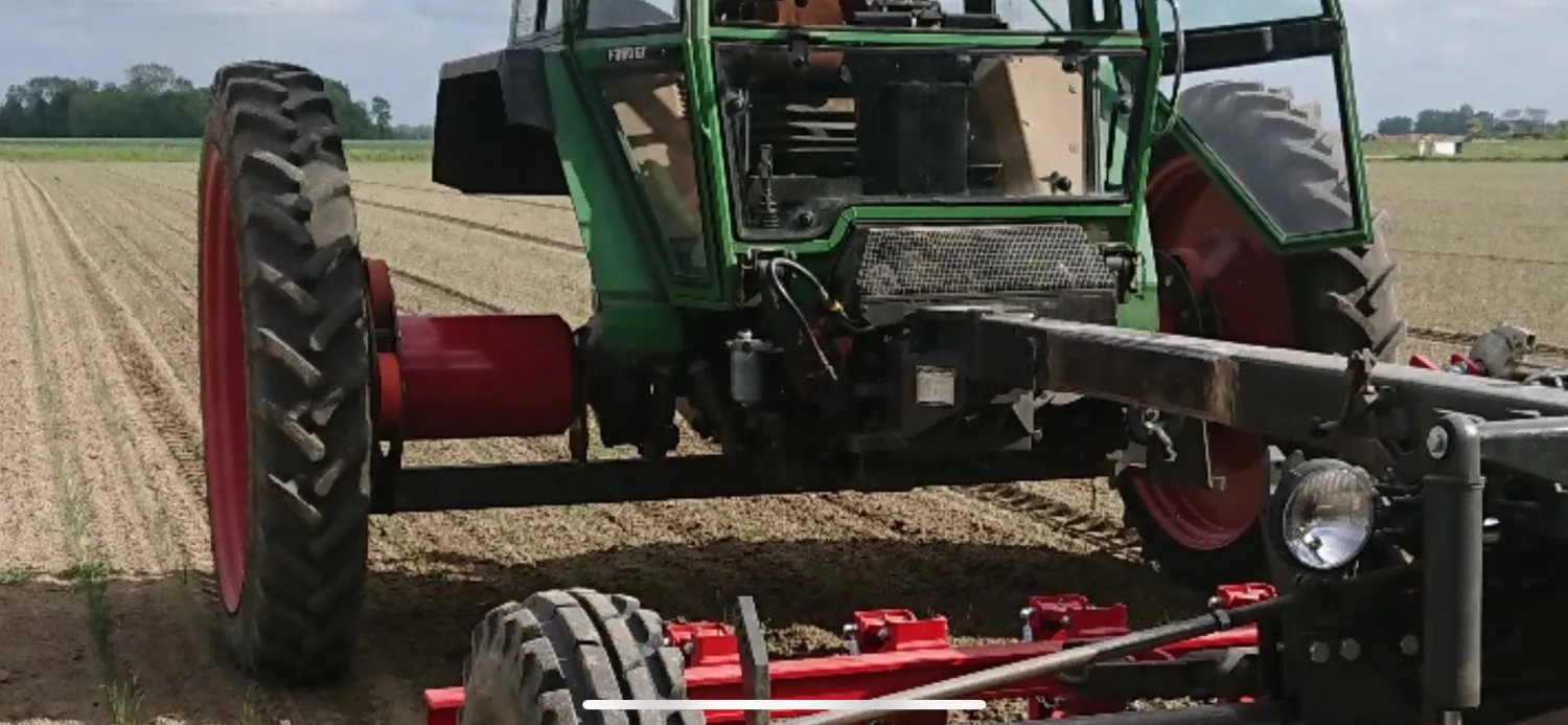 Te koop. Fendt 360 GT. Verbreed naar 3 meter spoorbreedte met brug onder de achteras voor extra steun. Middenraam 1 meter verlengd voor meer ruimte en beter zicht op de schoffelmachine. Fronthef, middenhef en achterhef. Zgan Alliance 270/95R48. Ook te koop: Steketee schoffeltuig 3 meter van 2020. Gebruikt in uien. Steketee schoffeltuig 3 meter. Gebruikt in bieten. Steketee spuitkappen voor bieten. Eventueel ook met tank en pompje voor in de achterhef.