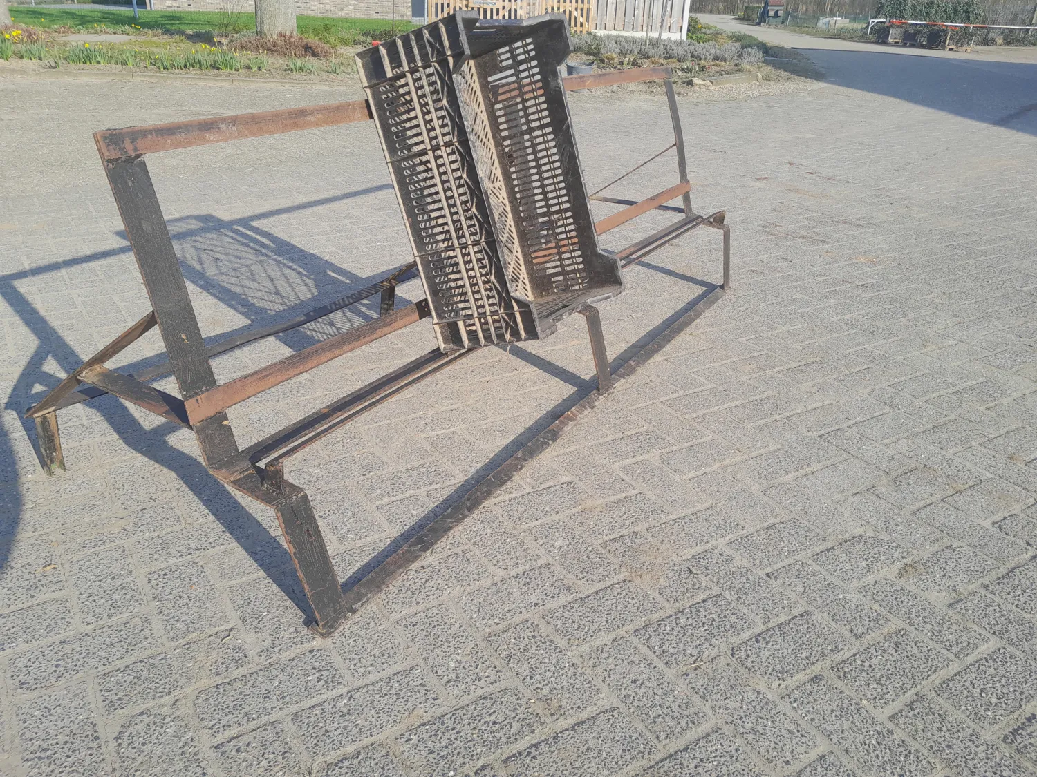 Presentatie/verkoop frame voor 5 kisten (40cmbreed). Voor huisverkoop, boerderij winkel. Kan ook worden gebruikt als standaard om kisten schoon te spuiten met de hogedrukreiniger. Vraagprijs €50,-