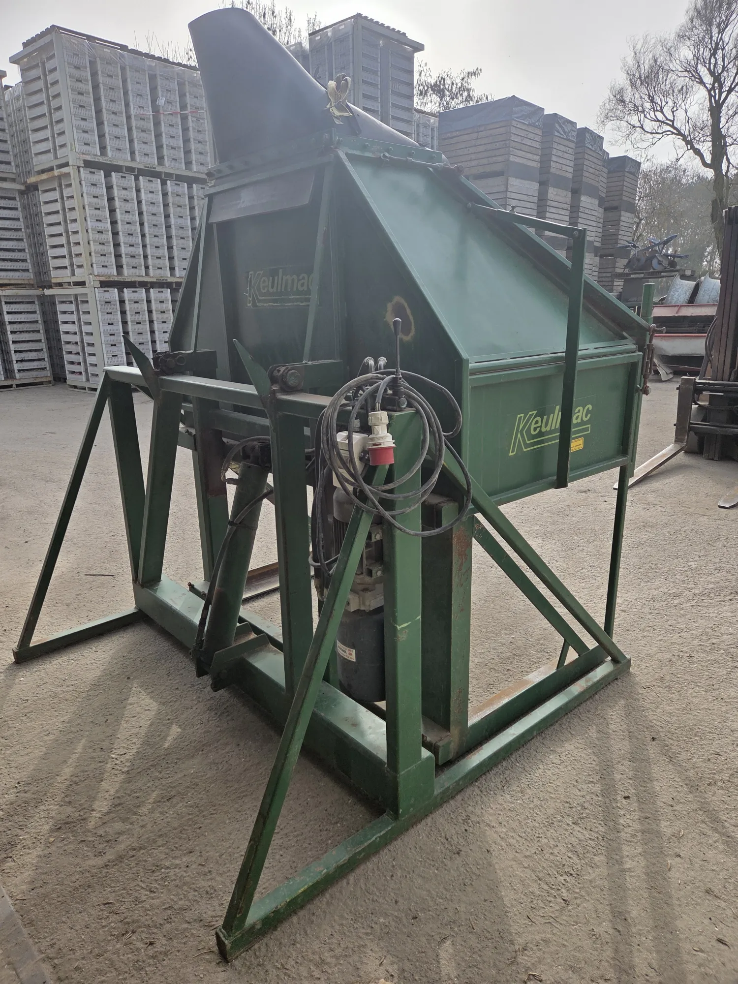 Keulmac KK1600 Stationaire Kistenkantelaar🥔🧅 ✔Maximale kistbreedte 160cm ✔Verstelbare rubber doseertuit ✔Zeer kist en productvriendelijk ✔In goedwerkende staat✅ 📽Filmpje draaiende machine op aanvraag!