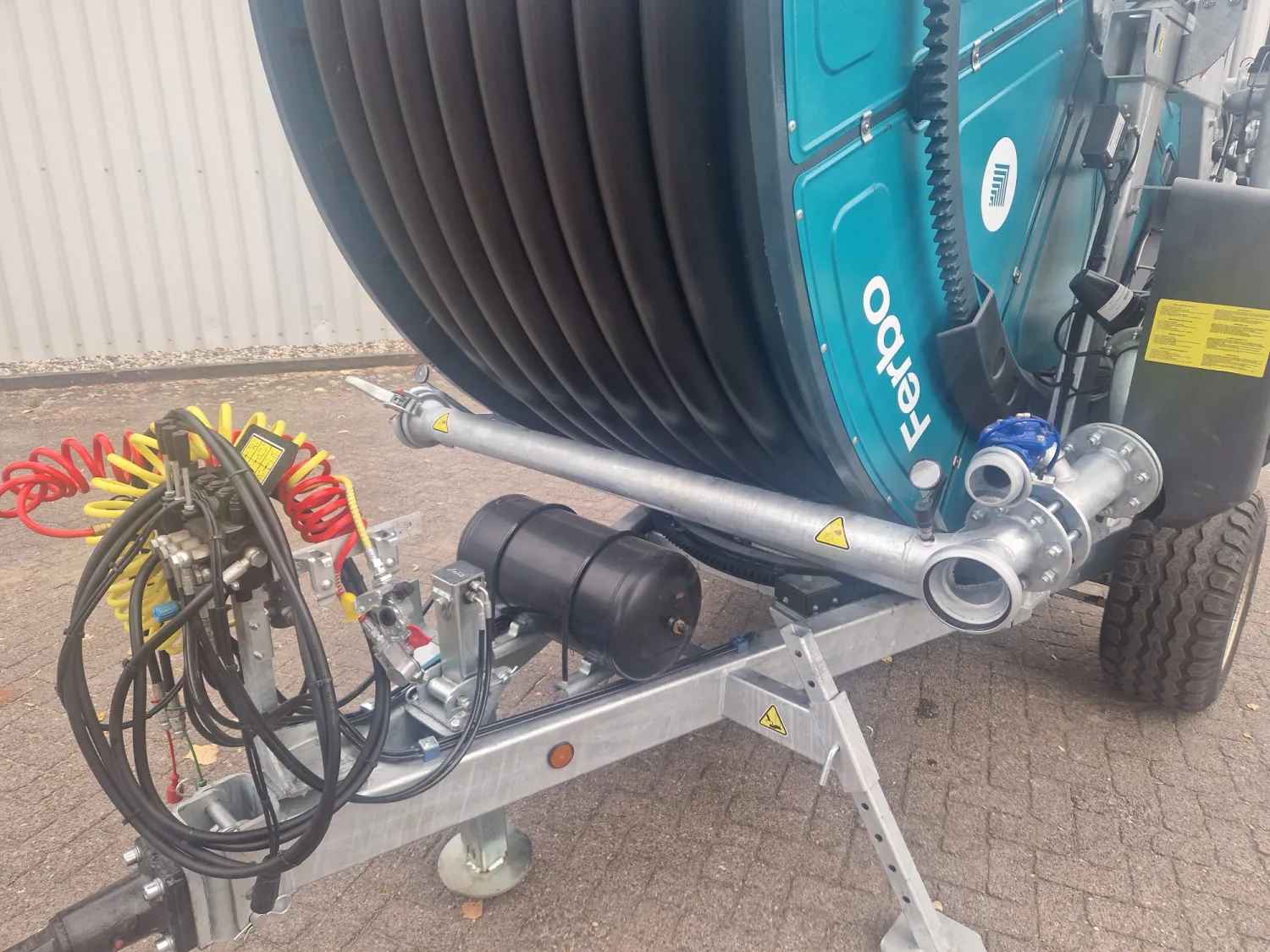 Ferbo GDS 120-350 - Bouwjaar: 2025 - Slanglengte: 350 meter - Slangdiameter: 120 mm - Op kenteken - Geheel gegalvaniseerd frame & drum - Drum in kleur gespoten - Tandwielkast met 4 versnellingen - Sime Explorer kanon incl. 3 nozzles - Dubbele invoer - 4 meter persslang incl. Bauer 133 vaderdeel koppelingen - Mogelijkheid voor opwinden met de aftakas - Handwiel - 2'' Afblaasklep (afslag op drukverlaging) - Irrigamatic EVO 1 incl. zonnepaneel - Led-zwaailamp - GSM module t.b.v. EVO computer - Hydraulische sproeiwagenlift, draaien & steunpoot - Enkelas onderstel incl. banden 40 cm breed - EU homologatie tandem (luchtremmen & led-verlichting) - Versteksproeiwagen GDs (rechts) met stalen wielen - Kopakkerset d.m.v. elektrische kraan & skipper sproeier - Timerset t.b.v. kopakkerset