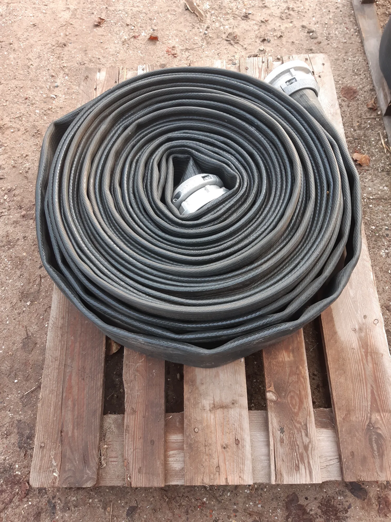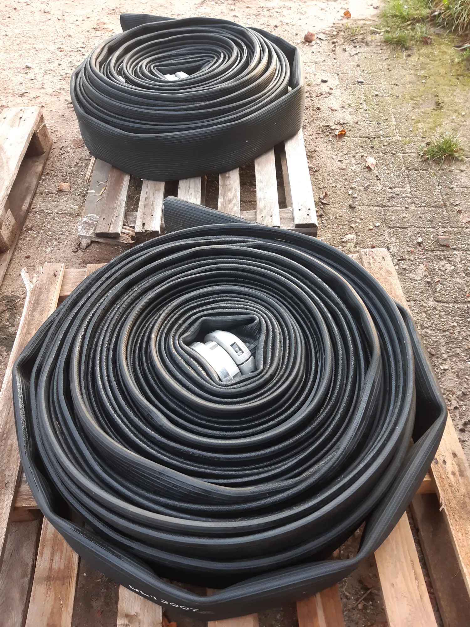 Beregenings/transportslang 4 duims 1 x 40 m met 2 storz 1q5 mm nok,1 x gebruikt 1 x +/- 50 m met 1 storz 115 mm nok,nieuw ongebruikt 1 x +/- 50 m met 1 storz 115 mm nok, nieuw ongebruikt Complete set €1075,-