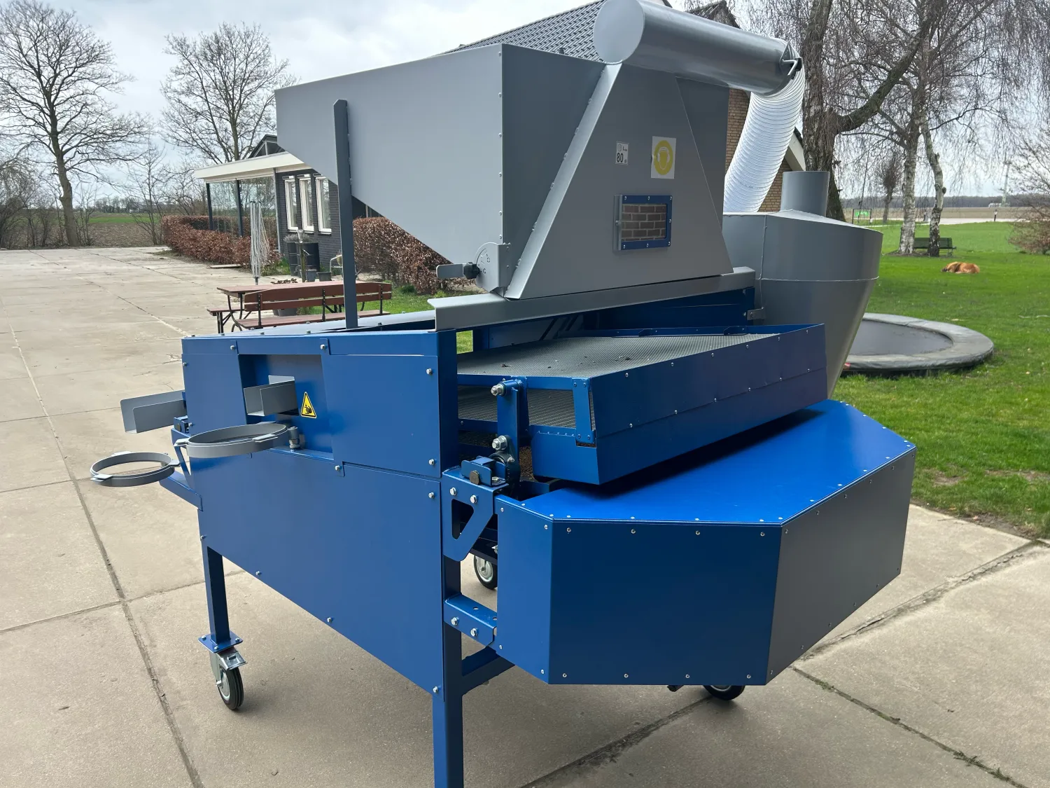 Deze professionele graanschoningsmachine werkt volgens hetzelfde principe als een combine: door middel van een combinatie van zeeftechniek en luchtstroom worden stof, kaf, stroresten en andere lichte verontreinigingen effectief van het graan gescheiden. Ideaal voor het reinigen van: ✔ Tarwe ✔ Gerst ✔ Haver ✔ Mais ✔ Koolzaad ✔ Bonen ✔ Erwten ✔ Overige granen en zaaigoed Tijdens het reinigingsproces wordt het product over een zeefbed getransporteerd terwijl een krachtige luchtstroom lichte delen zoals stof, kaf en loze korrels afzuigt. Hierdoor houdt u een schoner en homogener eindproduct over dat beter geschikt is voor opslag of verdere verwerking. Belangrijkste Eigenschappen: Werkt volgens combine-principe (zeven + luchtstroom) Geïntegreerde cycloon-afzuiging voor stof en lichte delen Mobiele uitvoering – eenvoudig te verplaatsen Continu reinigingsproces Geschikt voor diverse graansoorten Robuuste industriële bouw Eenvoudige bediening (380V) 🚜 Toepassingen: Akkerbouwbedrijven Loonwe