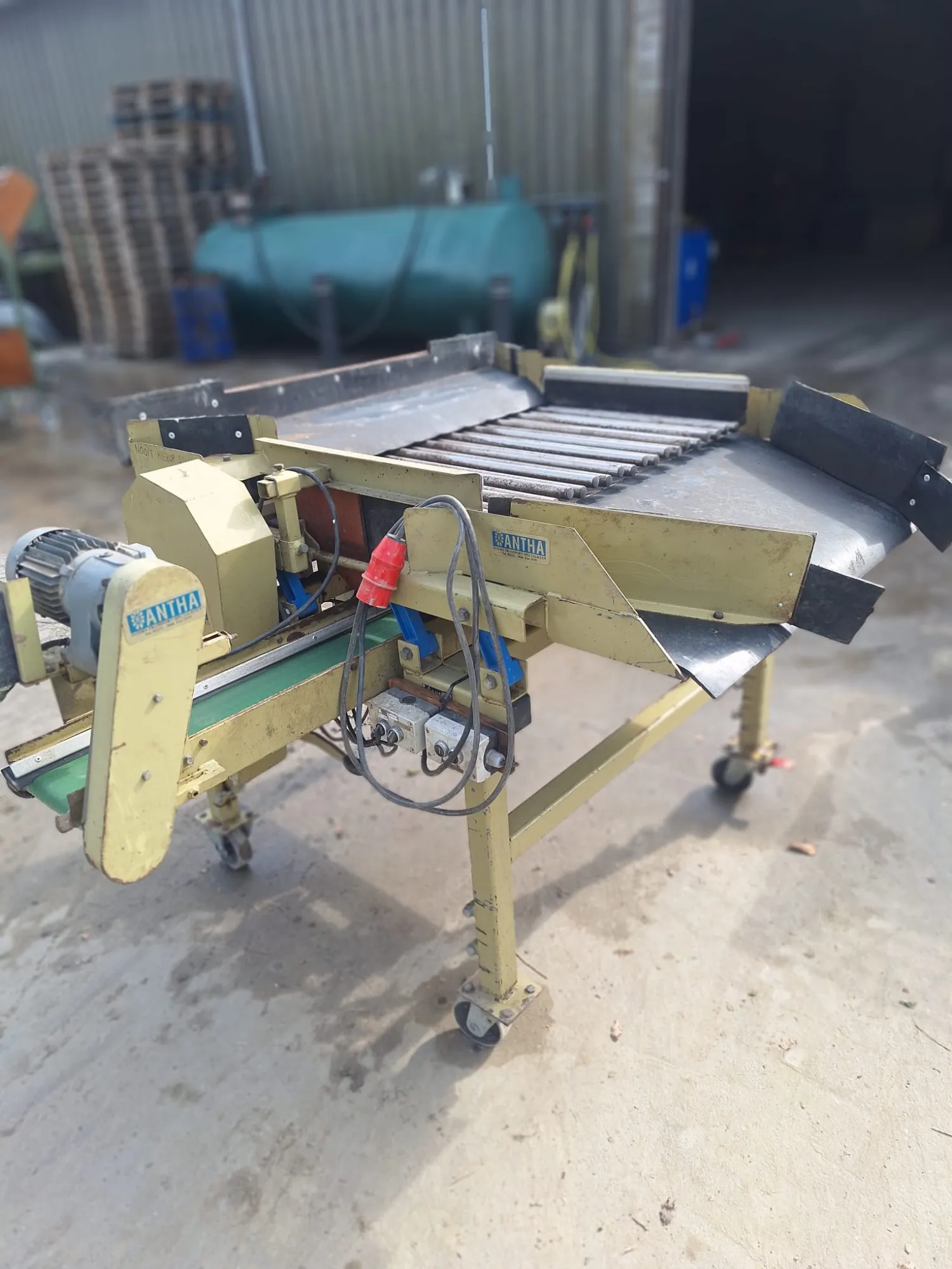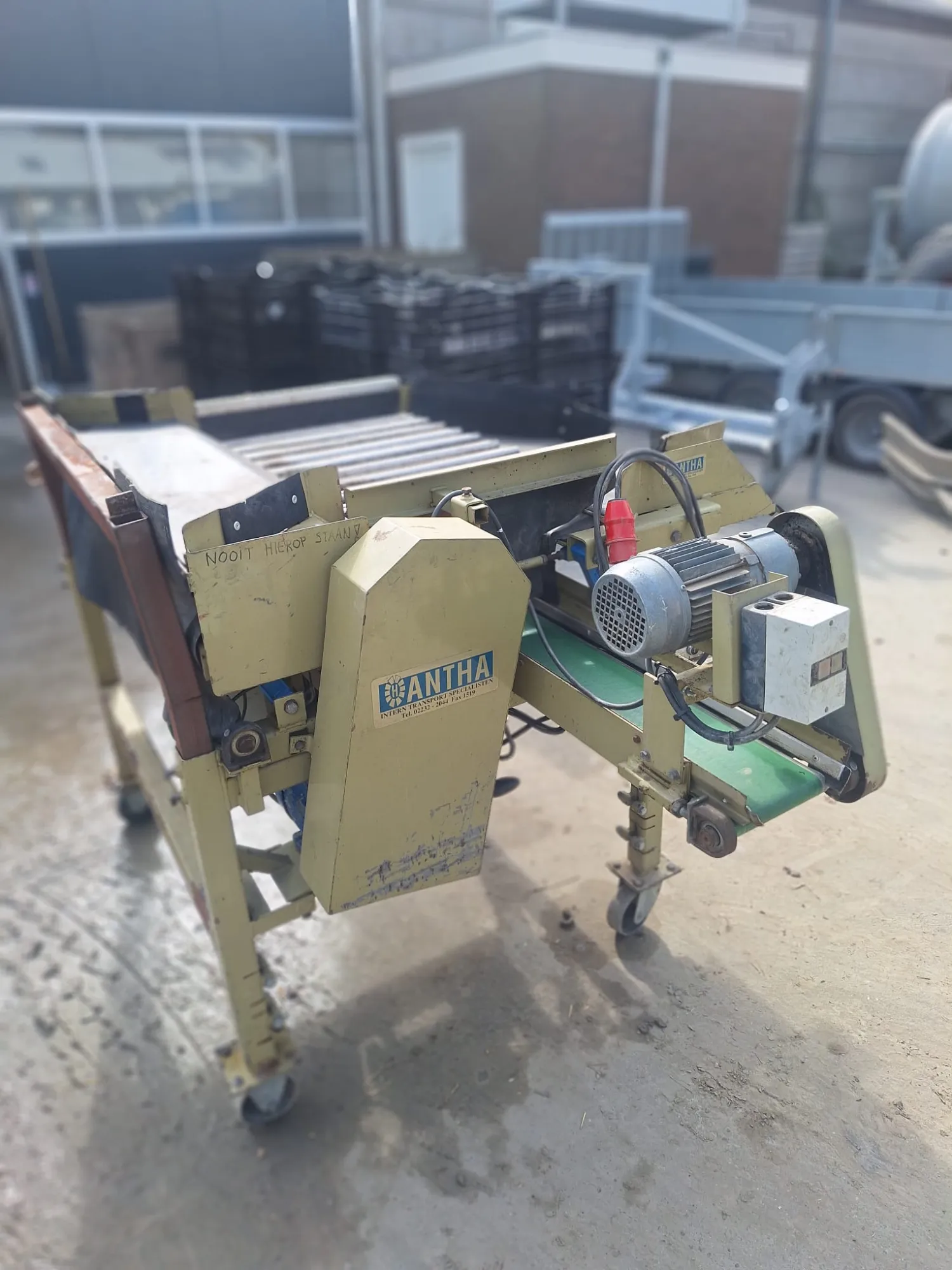 Antha rollensorteerder, rollen electrisch verstelbaar, recentelijk exentriekaslagers vervangen, staat opzware zwenkwielen, hoogte verstelbaar