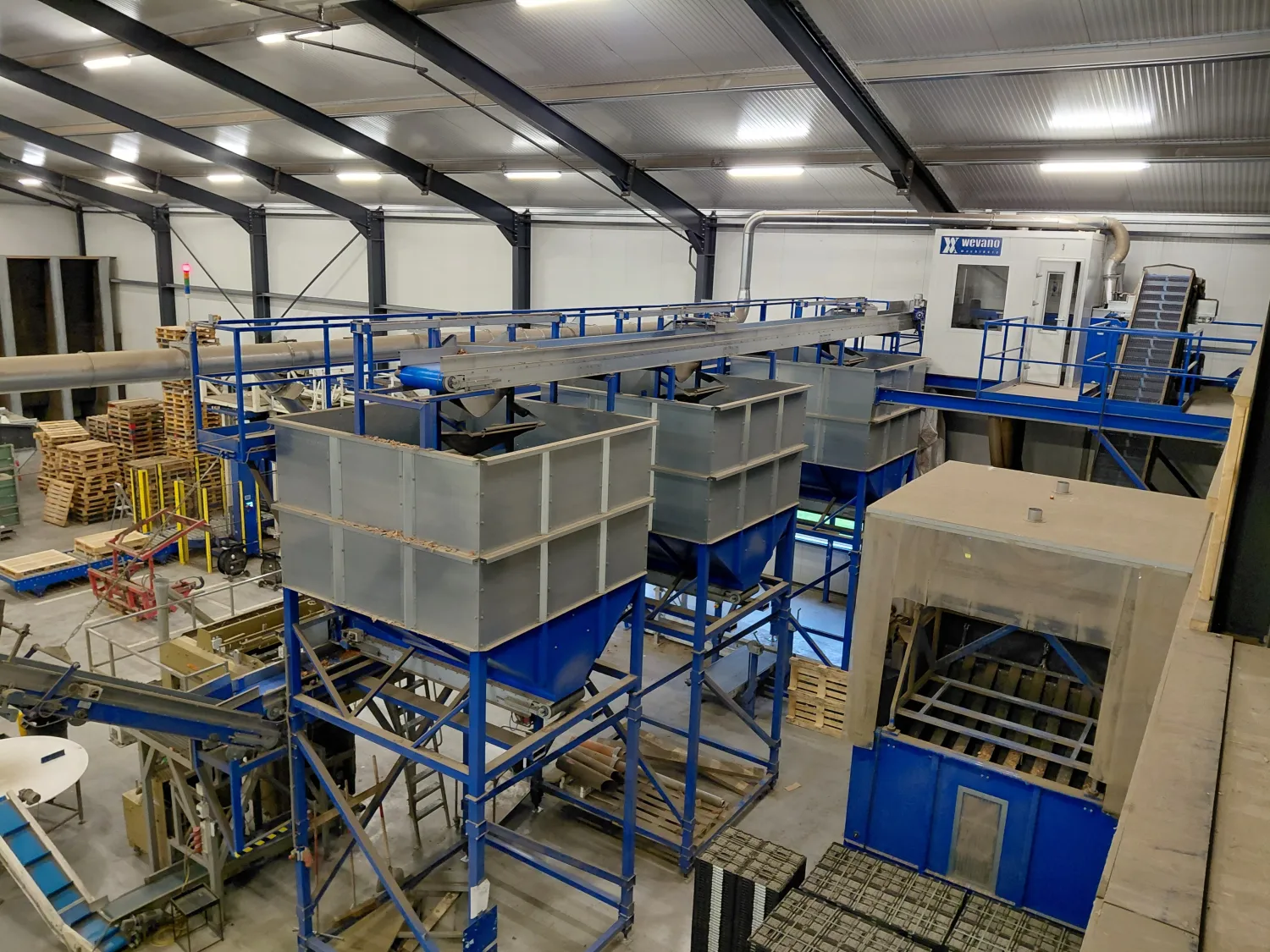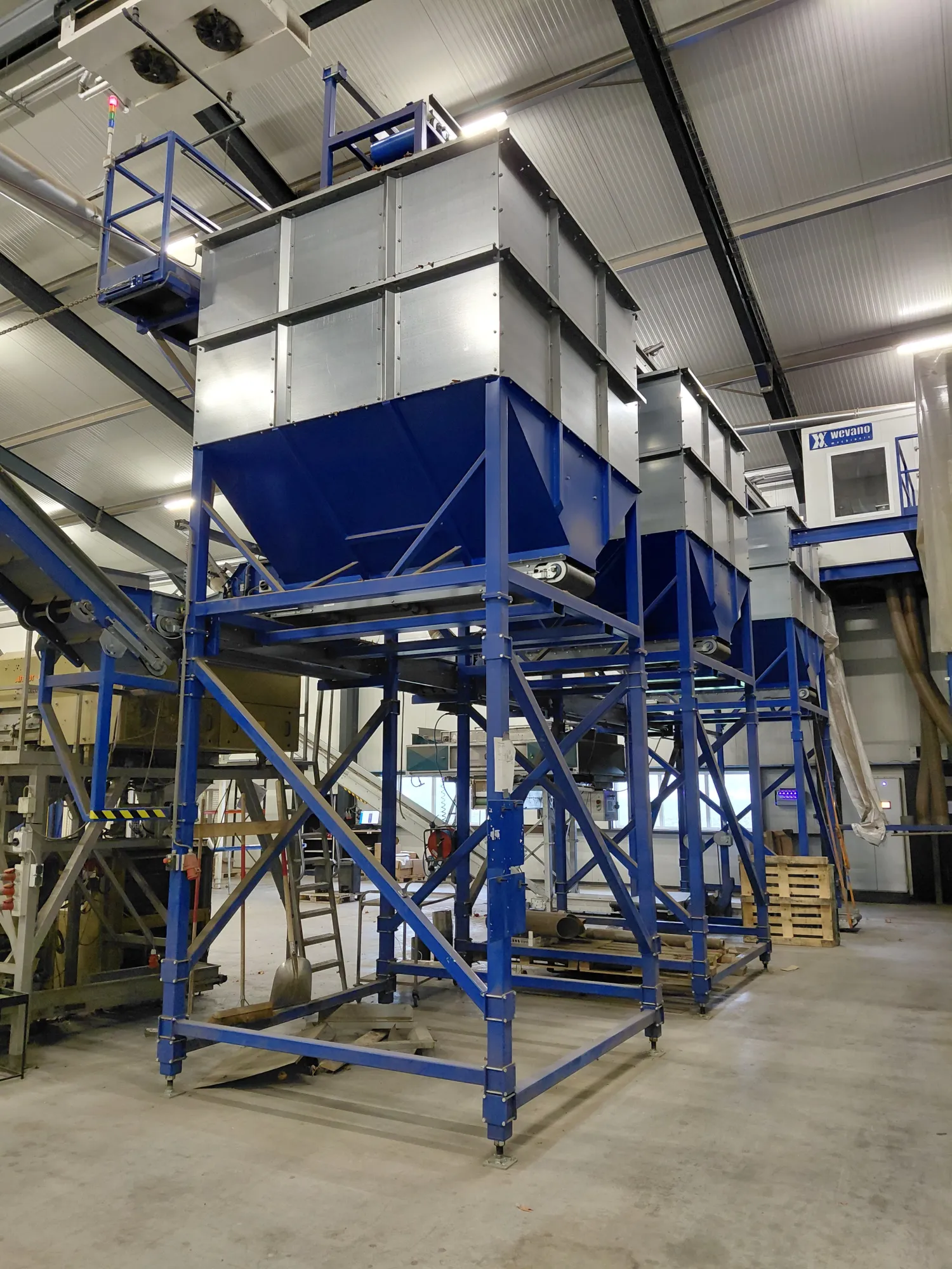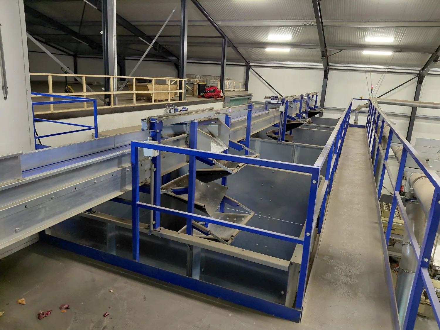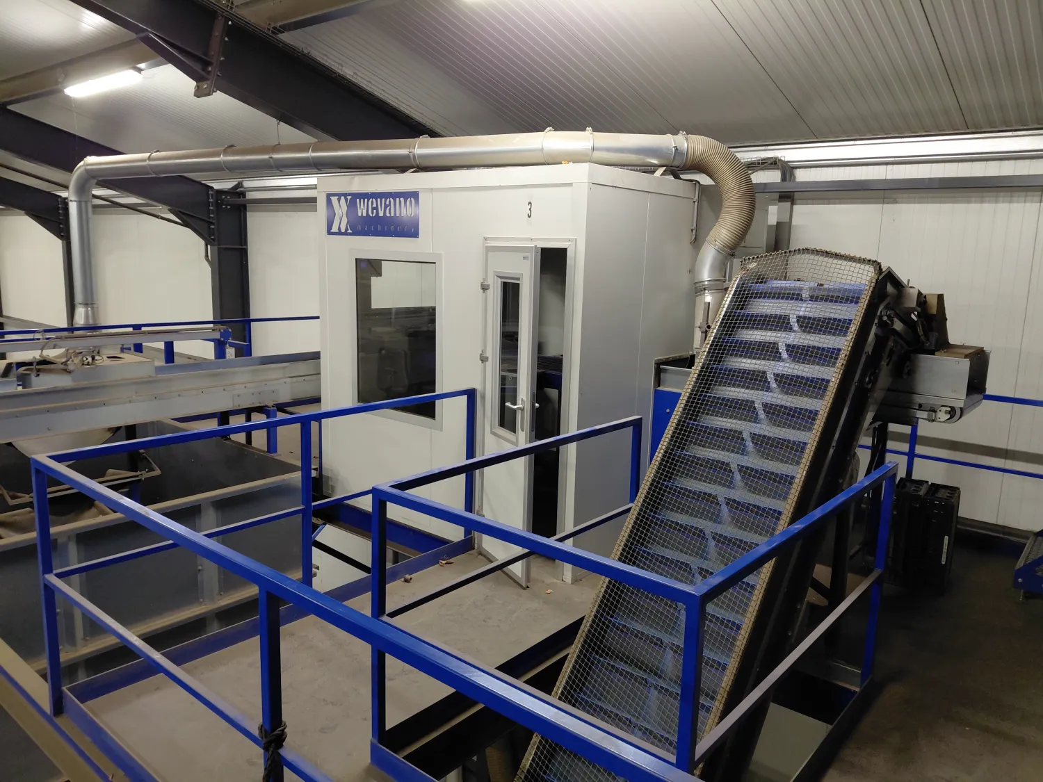 Complete Wevano verpakkingslijn bestaande uit: - Bunker met kistenlediger - Opvoerelevator - Leescabine - 3 bunkers a 8 ton - opvoerband voor 4e uitgang - Bouwjaar 2021 Compleet met aansturing Eventueel in delen te koop Specificaties op aanvraag verkrijgbaar Voor meer informatie bel of app met Thijs Geerse 0619537461