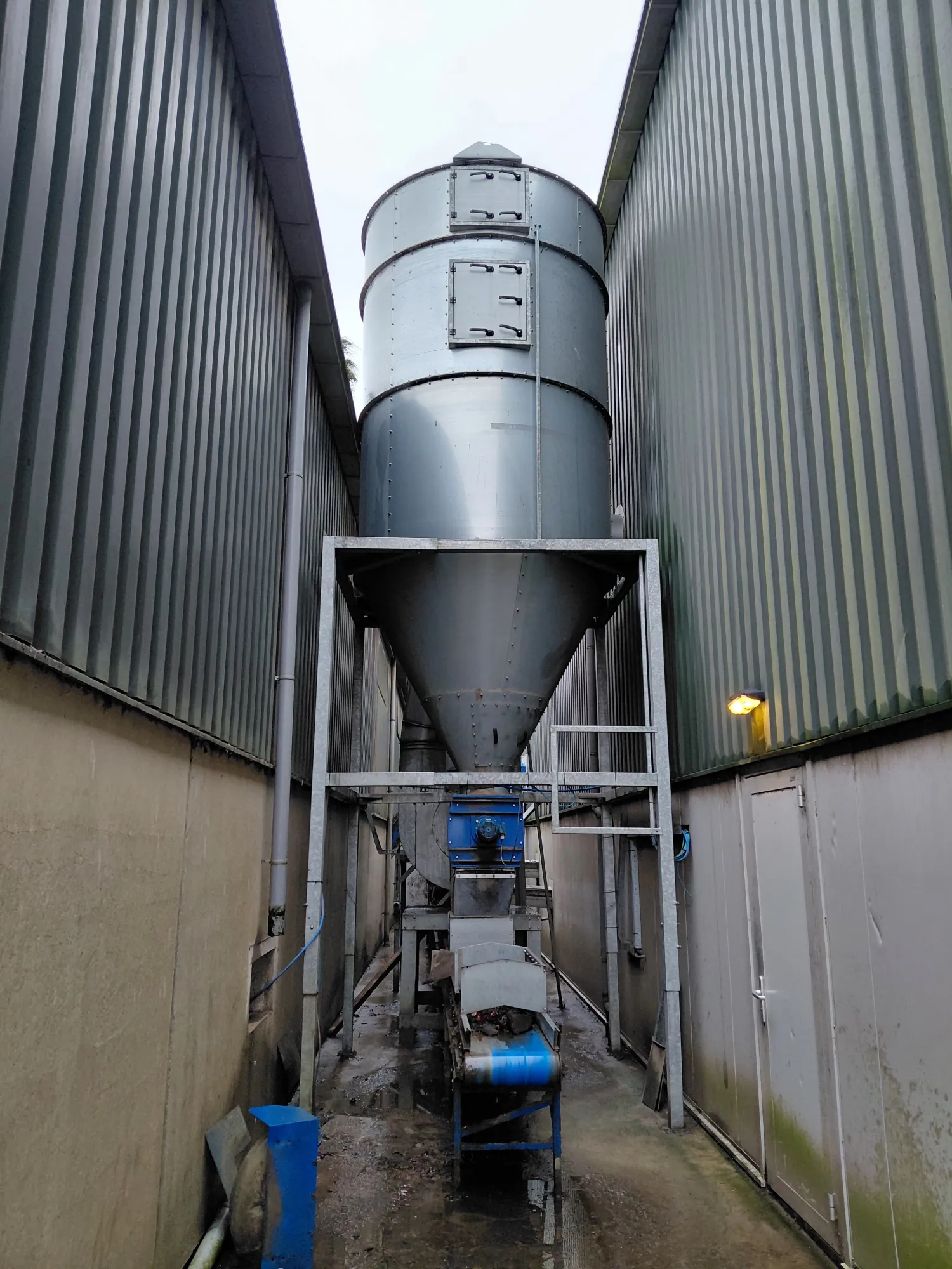 Meconaf Cycloon filterinstallatie - CF500 - 22kw - 19.000m3 luchtverplaatsing/uur - luchtsnelheid van 24m/sec - Exhauster na filterinstallatie waarbij afgezogen lucht wordt geretourneerd voor een stabiele temperatuur in de hal Eventueel met afvoerbanden voor het vuil Bel of app Thijs Geerse voor meer informatie 0619537461