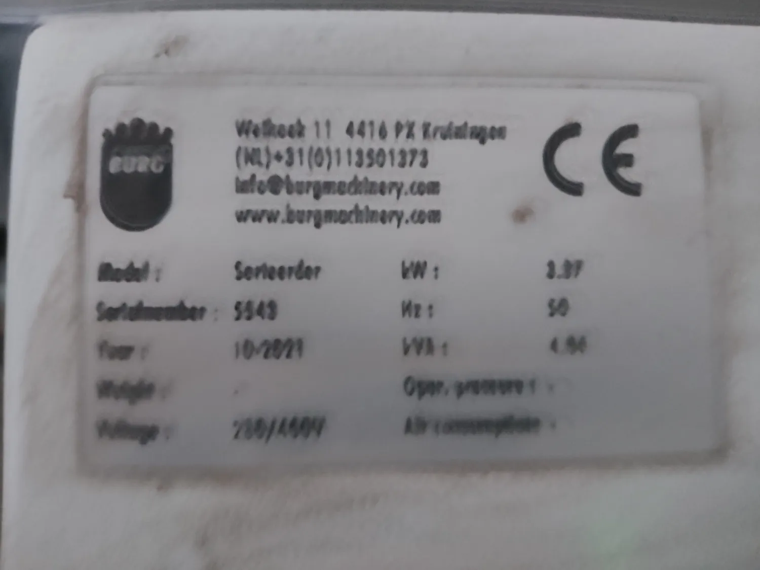 Weeg sorteerunit voor o.a. kool en pompoen Merk: Burg Machinery Bouwjaar 2021 Bestaande uit: - V band voor verenkellen - Mesbandje met weegunit - Sorteermachine met 4 + 1 uitgangen - Besturingskast - 3 Fust weegschalen Machine verkeerd in zeer goede staat