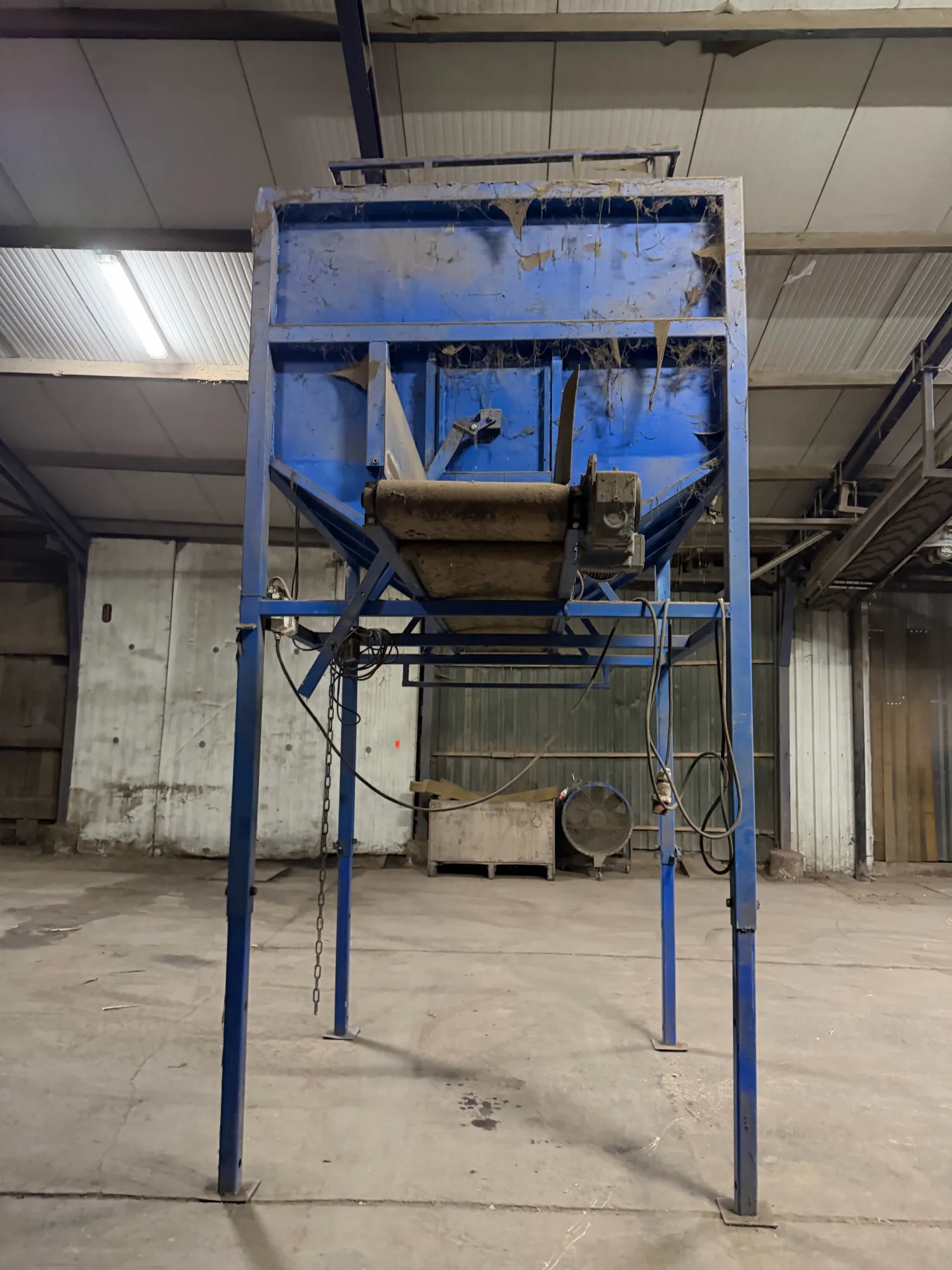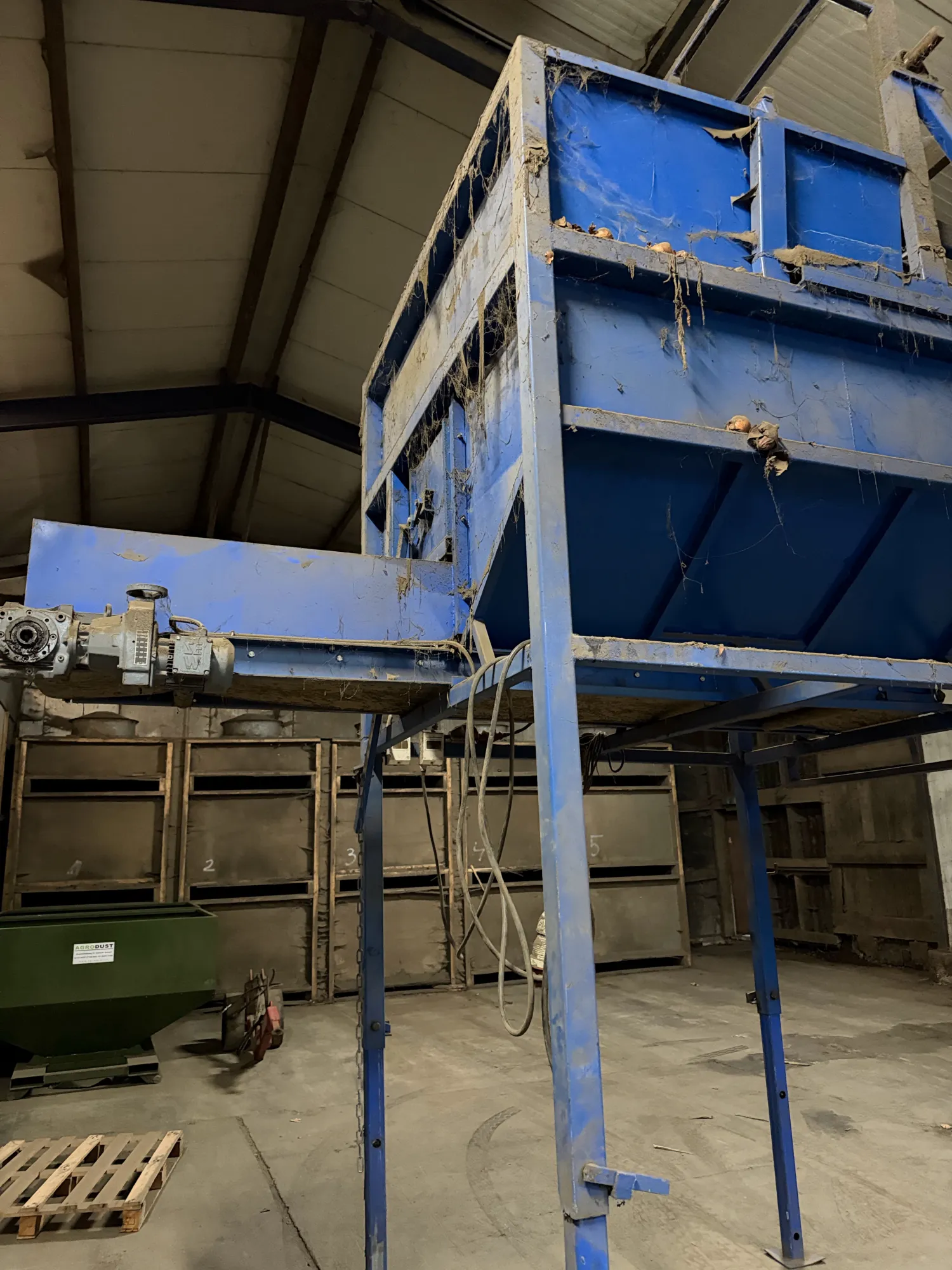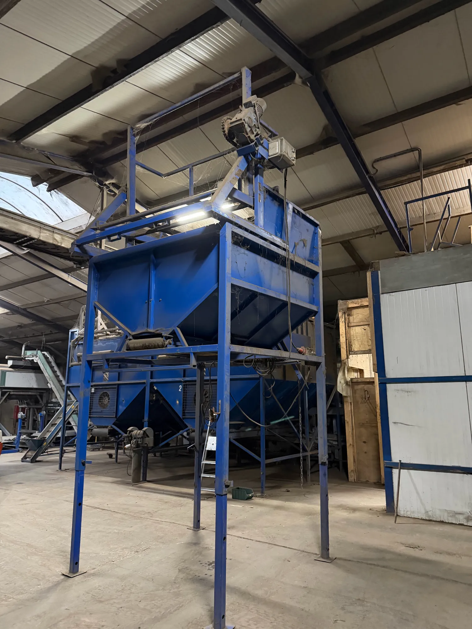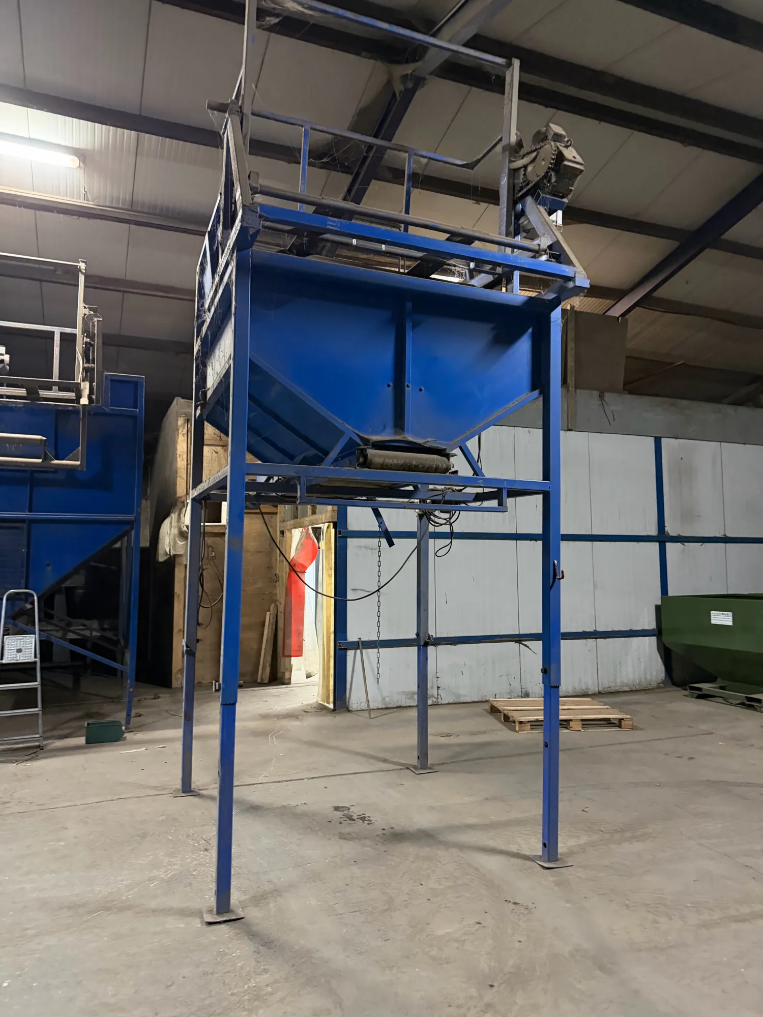Bunker met elektrische kantelaar en variabele snelheid van de uitvoerband. Uitvoer 120cm 1,95x1,95x 3,50 (variabel)