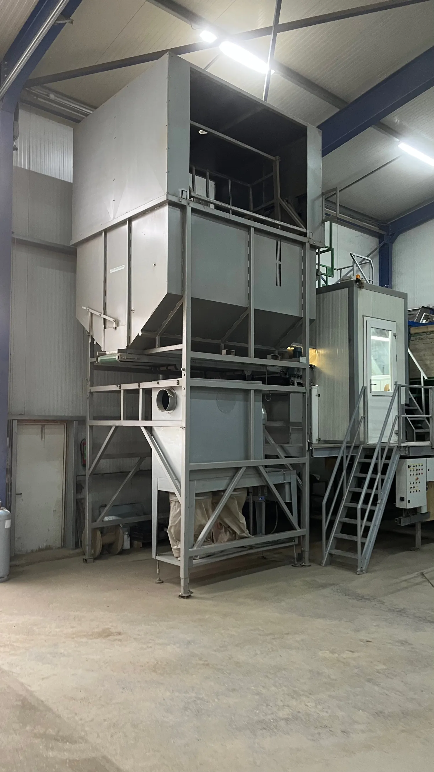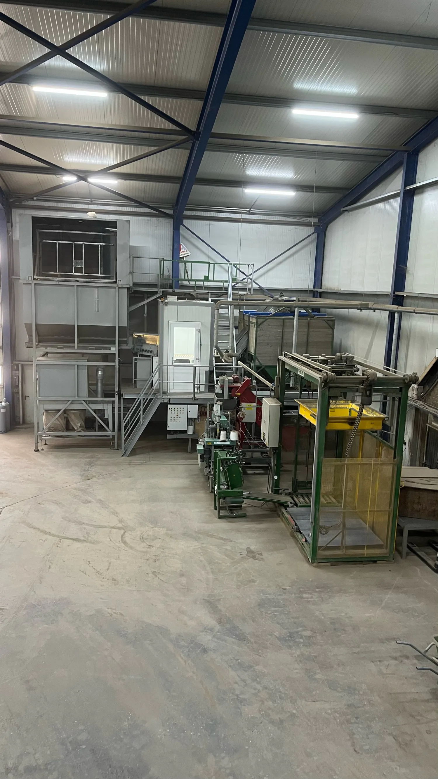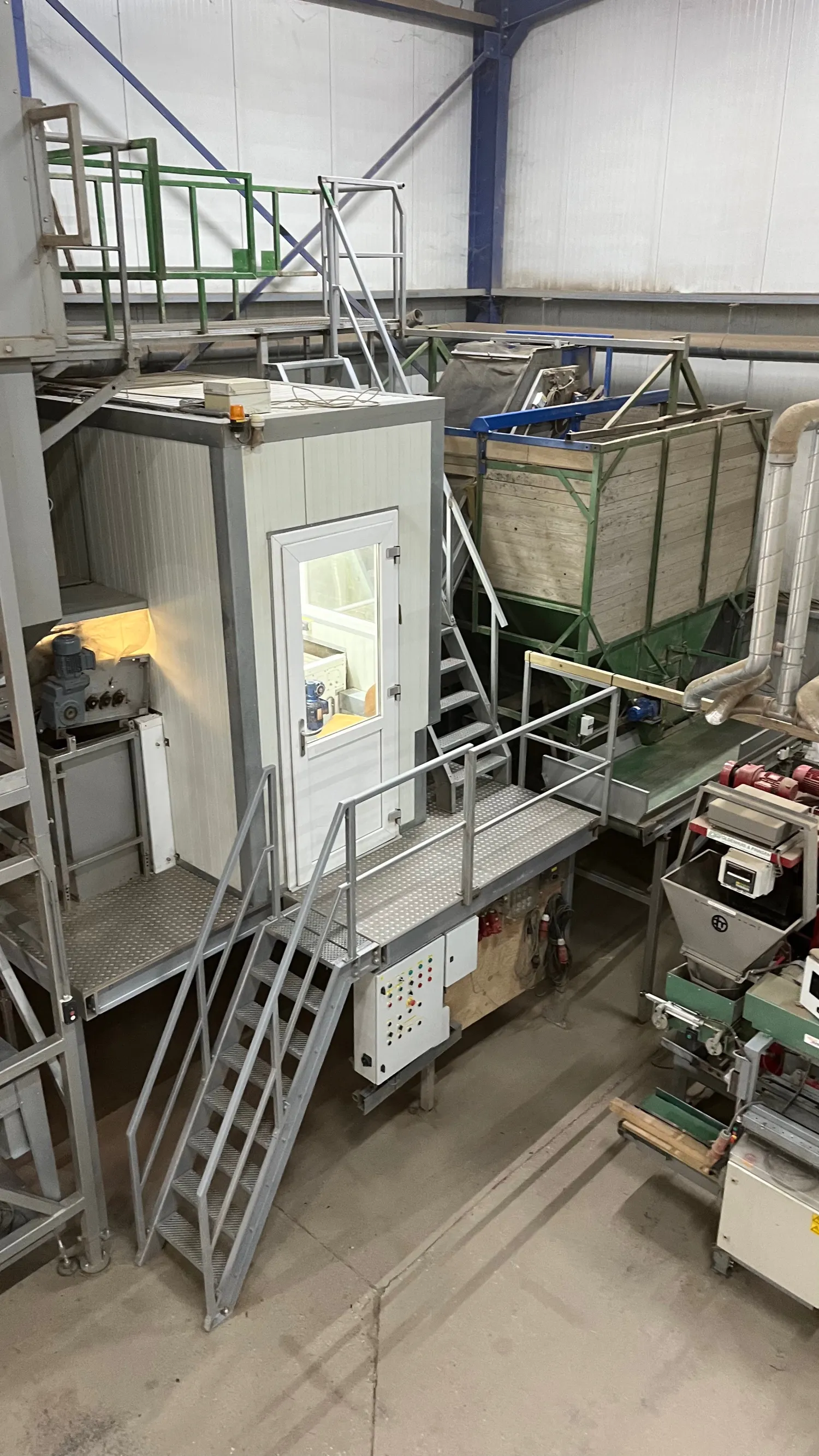 Inpak lijn compleet Bunker met Kistenkantelaar Onderlosband Rollenset Schouten Leeskamer met stofband Alles frequentie geregeld Opvoerband naar bunker Bunker met onderlosband Transport banden naar de afweger of Bbv Deligni afweger digitaal Propak Naaistraat met frequentie regelaars Visser afschoppen Visser Palletiseerder Met weger Jongejans afzuiger