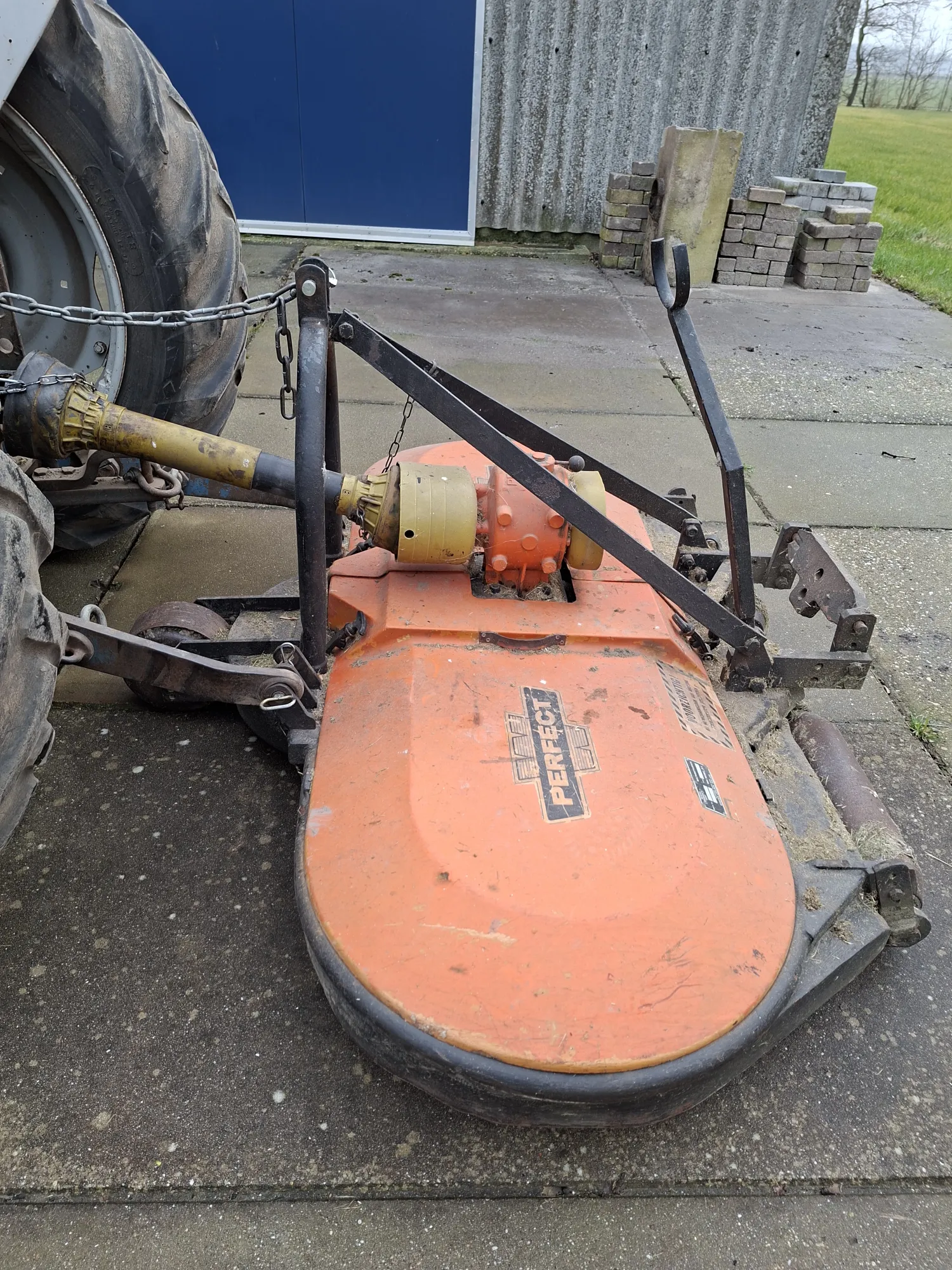 Perfect van Wamel circelmaaier. 200 cm werkbreedte 3 messen Doorvoor aftakas, geschakeld via versnellingsbak tbv bijvoorbeeld een spuit of hakselaar Inclusief aftakas Zeer goede staat marge