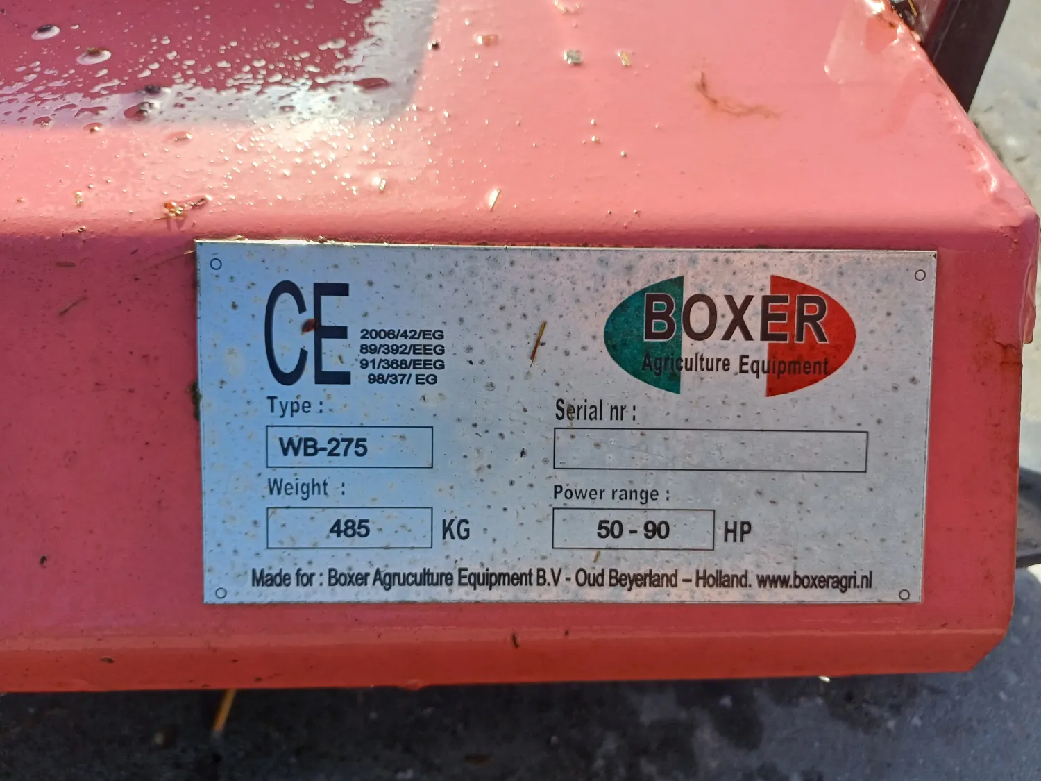 Tekoop aangeboden Nette Boxer weilandbloter 275 cm werkbreedte Voorzien van 3 rotors met slag messen Plaatwerk onder de kap super strak Aftakas compleet Bouwjaar 2022. Direct inzetbaar. Prijs 1950 euro ex btw 06 42859810