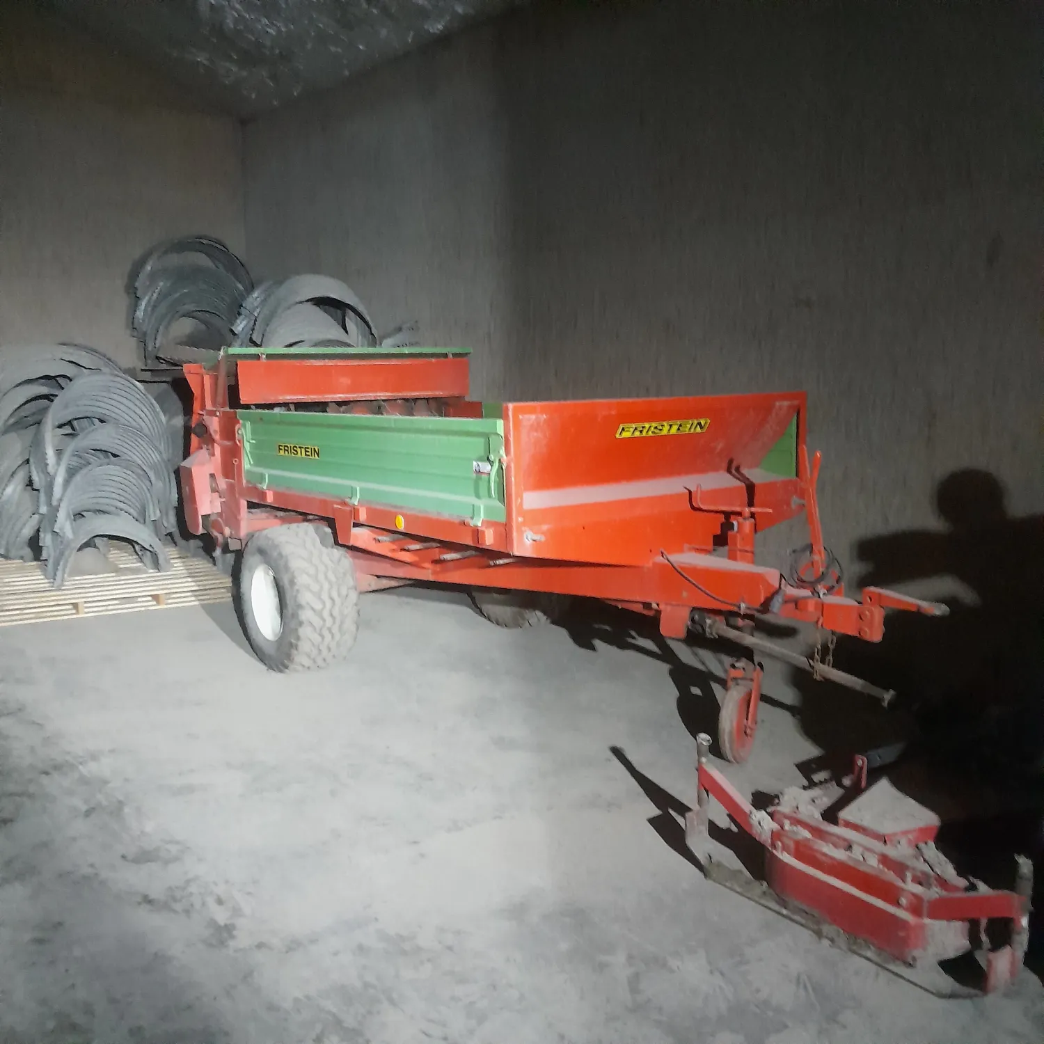Fristein mestverspreider/compoststrooier. 3,5 ton, zgan, kenteken, brede+smalle wielen, spoorbreedte 1,50, wals met messen die mooi verdeeld, mooi lichte kar die zomer en winter het land in kan zonder structuurbederf.