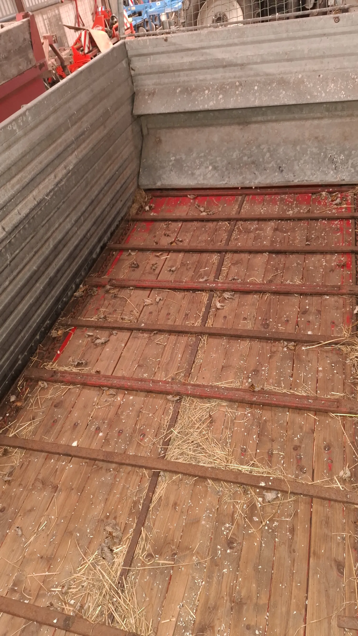 Agromet meststrooier bak 4 meter lang. mooi op de banden . Bodem goed . Dubbele wals . Met NL kenteken