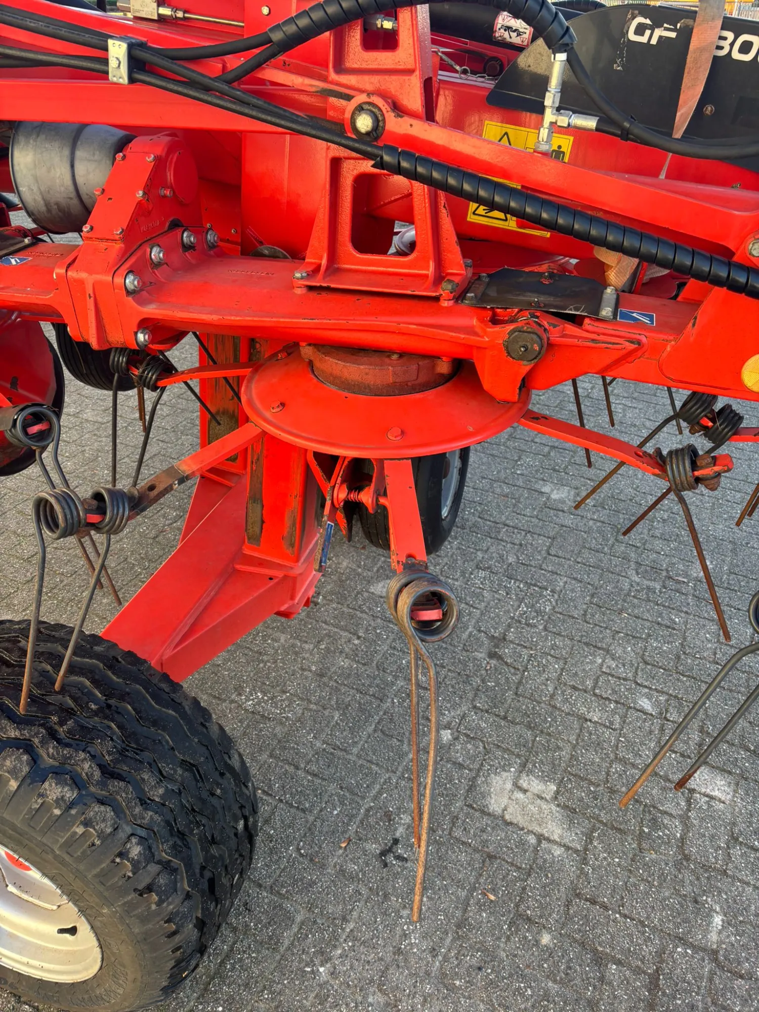 Kuhn GF 13002 - Bouwjaar: 2012 - Getrokken schudder - Hydraulisch opklapbaar - Werkbreedte: 13,00 meter - Aantal rotoren: 12 - Aantal tandarmen per rotor: 6 - Liftas - Kant schuddoek