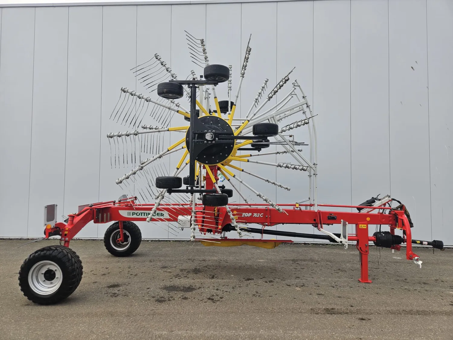 Pöttinger TOP 762 C - Bouwjaar: 2022 - Werkbreedte: 7,50 meter - Midden afleg - Gedwongen gestuurd - 3,3 meter rotordiameter - Enkelzijdig heffen - 13 tandarmen - Kenteken