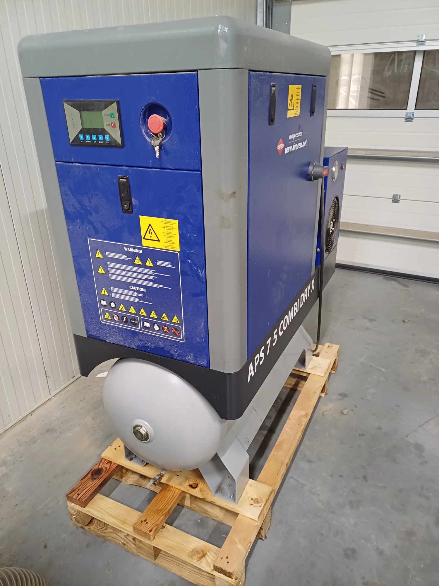 Airpress schroefcompressor te koop. Nog zeer jonge machine maar wegens te weinig capaciteit voor nieuwe sorteermachine nu te koop. Airpress aps 7.5 met luchtdroger bouwjaar 2020.