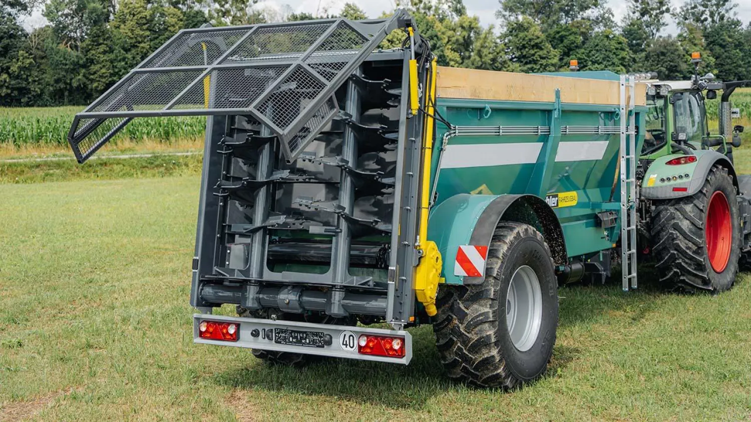 Oehler STE-140 enkelasser mest strooier. Bakafmetingen: 5500x(2000-1450)x1350mm (LxBxH) Overtuigende eigenschappen: 1. DLG-geteste strooinauwkeurigheid (fijnstrooi-unit met 2 verticale rollen) 2. Spreid-unit: verwijderbare, elektronisch gebalanceerde, vastgeschroefde verdeeltanden 3. Gegalvaniseerde, robuuste schrapervloerkettingen 4. Versterkte, vastgeschroefde schrapervloerlatten 5. Hydraulische steunpoot 6. Danfoss hydrauliek met traploze snelheidsregeling vooruit en achteruit 7. Slijtagearme vloer (zeefdrukplaten) En dat met een maximale aslast van 12t en 4t op de K80! Leverbaar vanaf €49.560