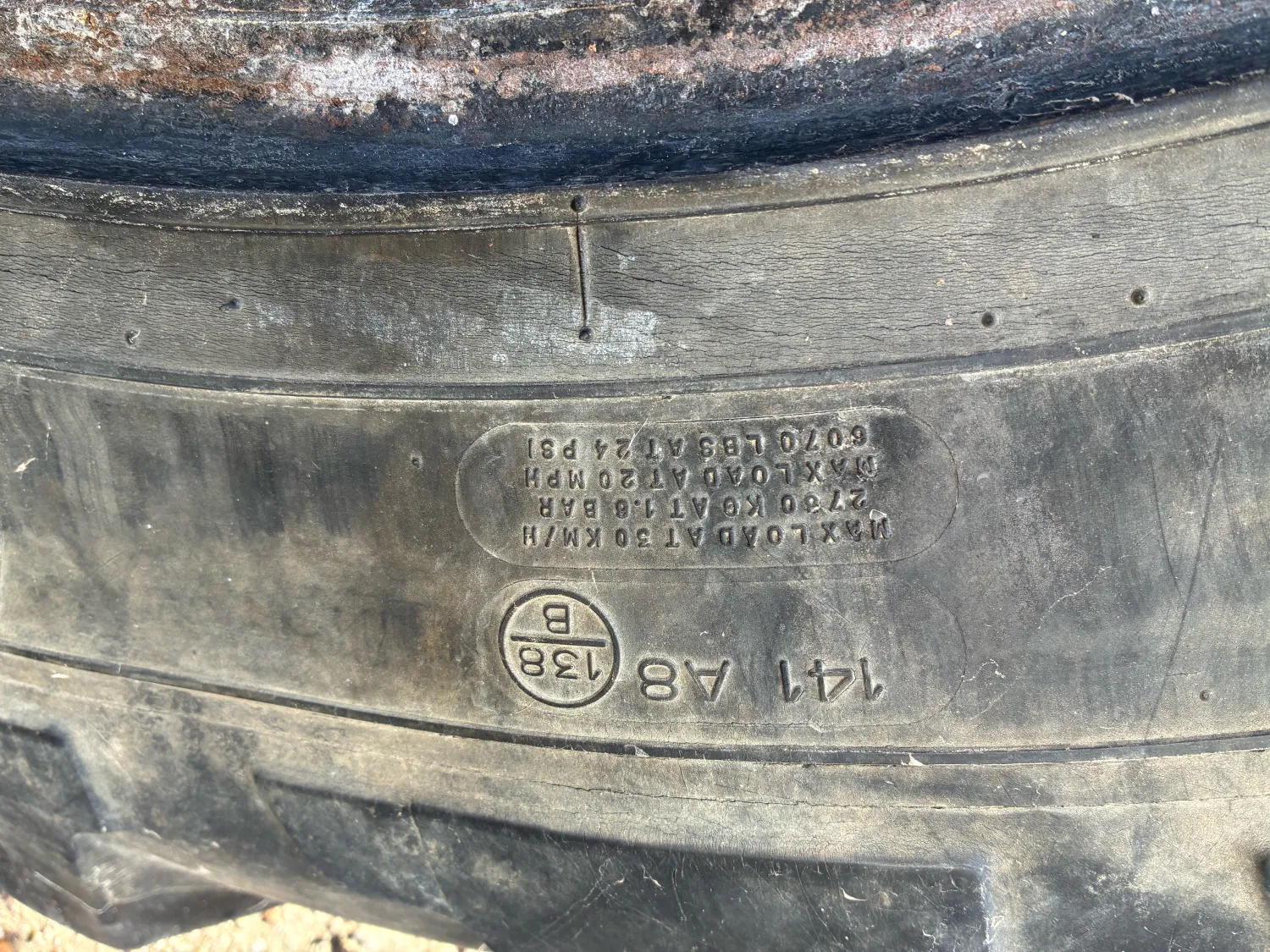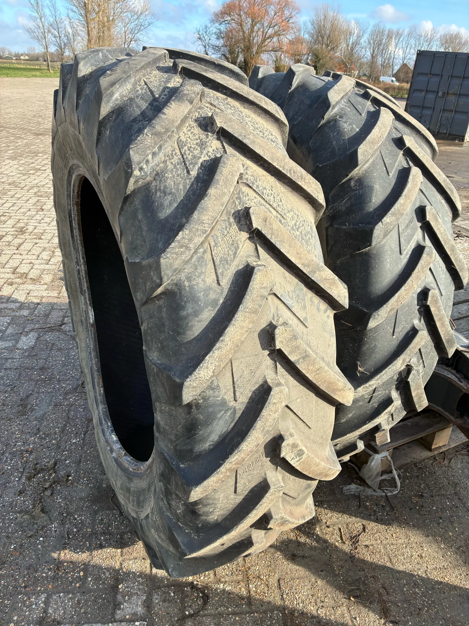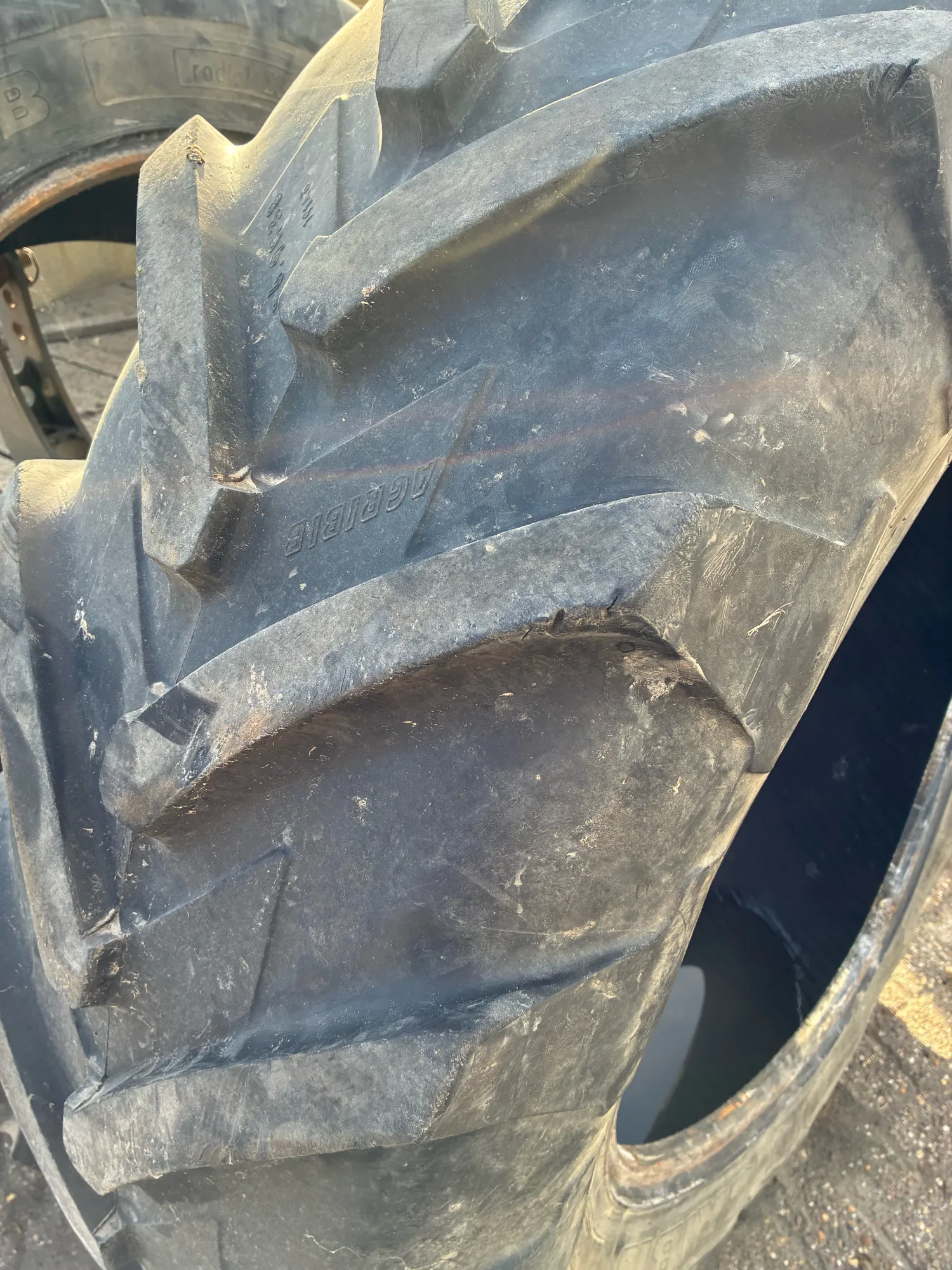 Michellin agribin 16.9 R38 profiel +/- 20% kleine droogte scheurtjes aan de zijkant.