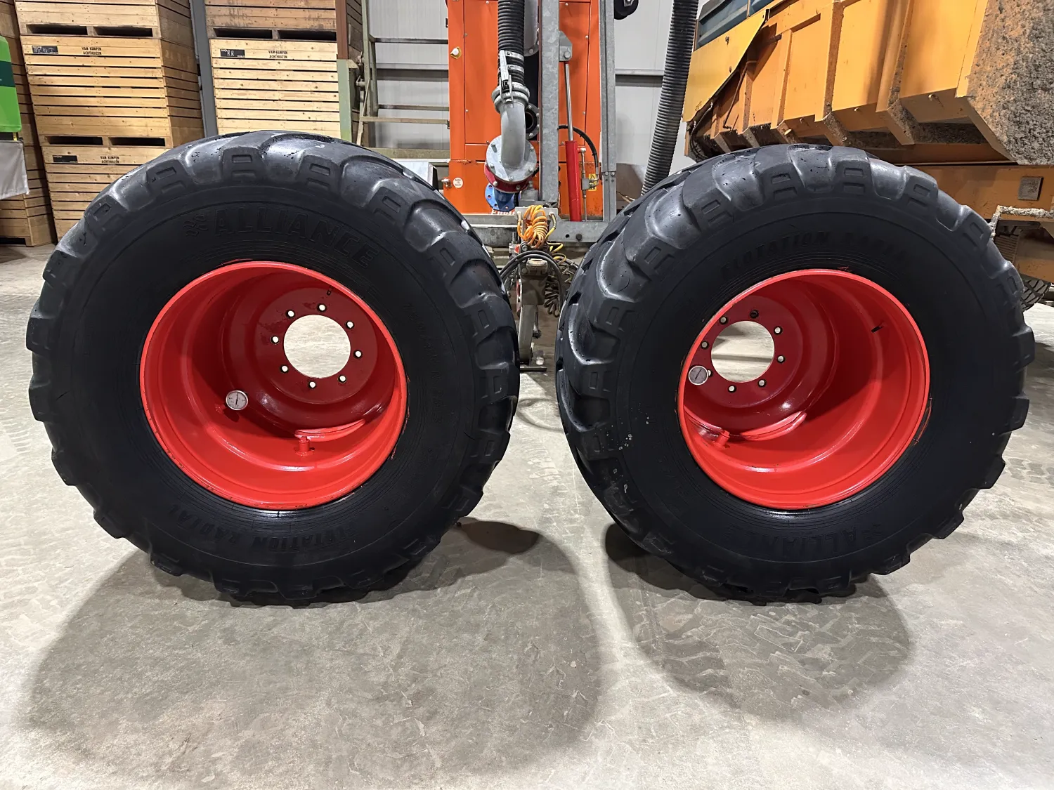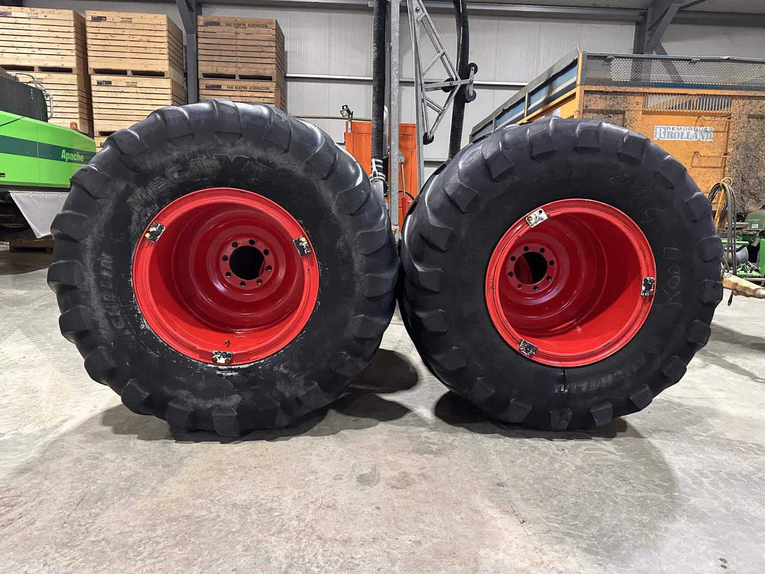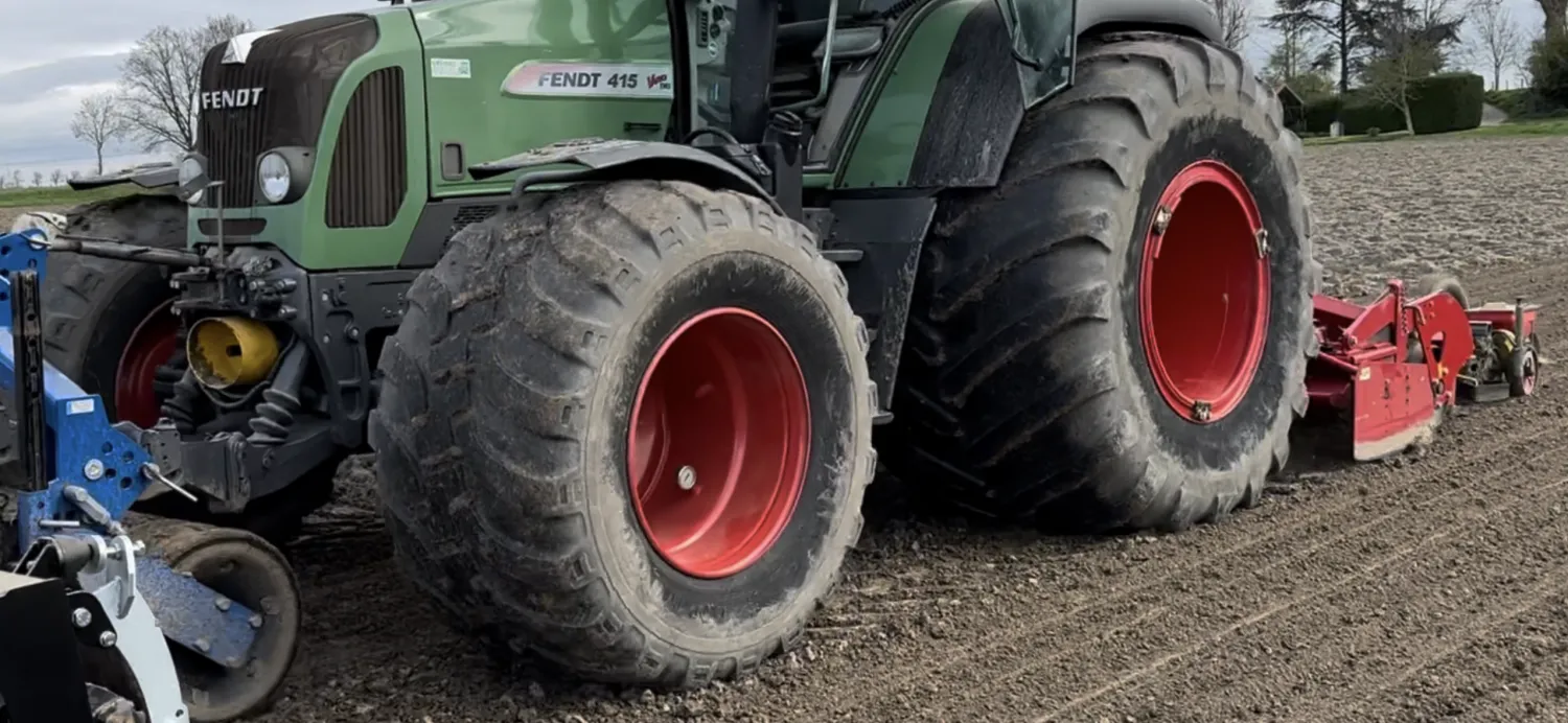 Te koop complete set wielen voor Fendt 400 of 500 serie 1050/50r32 michelin megaxbib en 750/45r26.5 alliance radial, zitten wat beschadigingen en droogtescheurtjes in maar kunnen nog prima een ronde mee. Valt binnen de 3 meter buitenwerks, de cabinesteunen wel wat aanpassen. Gaat alleen als complete set weg, vraagprijs 3.500 euro ex btw.