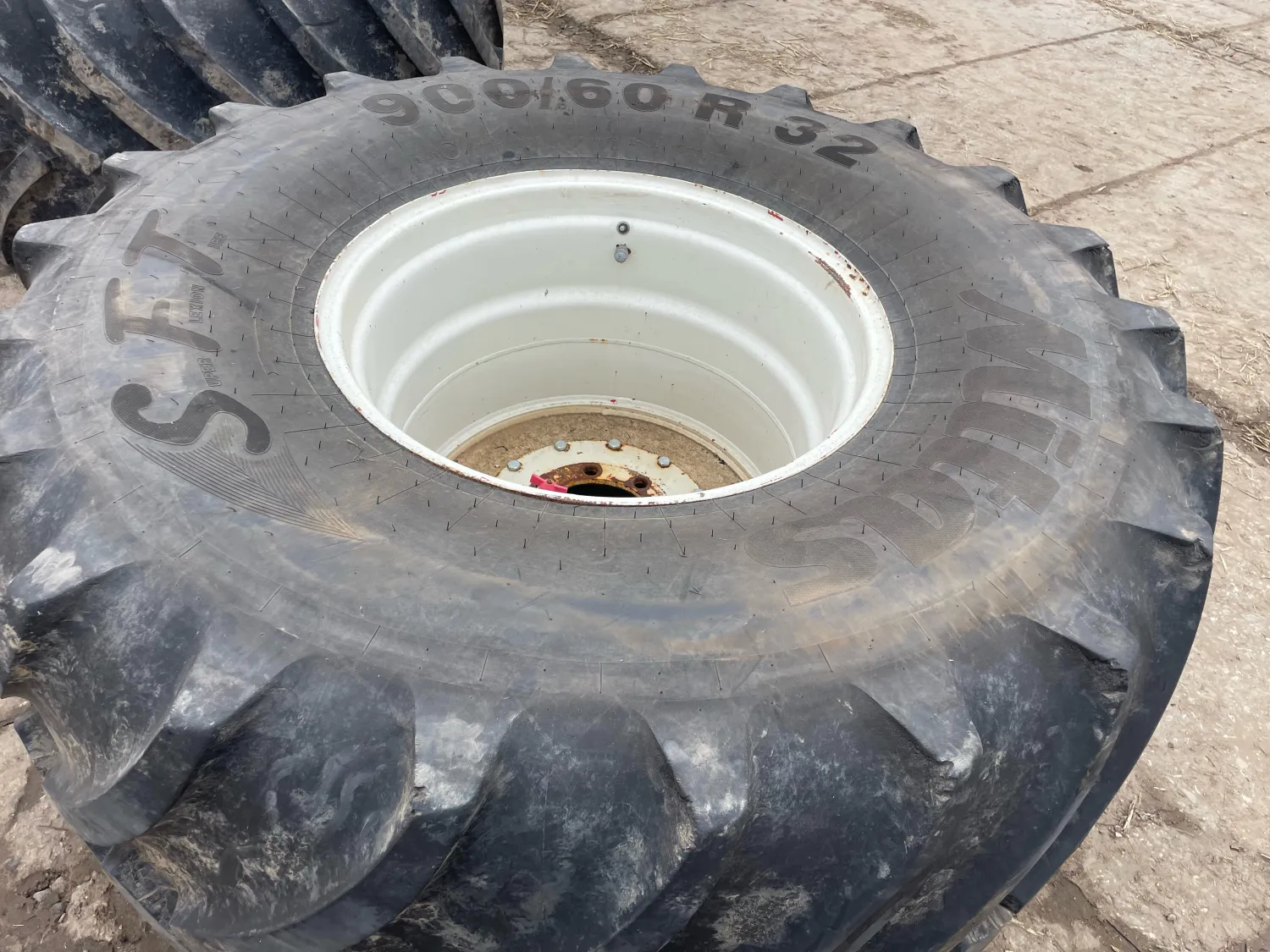 1x set banden Mitas SFT banden 900/60r32 banden. Profiel 60% kleine beschadigingen op hoek van nok. Geen plakkers of scheuren. Gaan weg omdat overbodig zijn geworden. Met wisselhart.