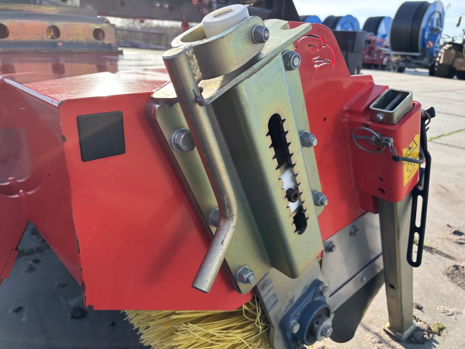 Zeer nette en heel weinig gebruikte Adler K600/210 veegmachine: • Werkbreedte 210 cm bij 20 graden schuinstelling • Grote borsteldiameter: Ø 600 mm (Volledige borsteldichtheid 100% PPN) • Robuuste rolverstelling • Standaard terugslagklep om overloop van de rol te voorkomen • Lange levensduur dankzij hoogwaardige primer en poedercoating • Grote zwenkwielen: Ø 250 mm x 60 mm • Standaard mechanische zijwaartse zwenking Inclusief optionele extra's: • Drie-puntsophanging voor gebruik aan de voor- en achterzijde • Hydraulische schuinstelling i.p.v. mechanisch Prijs €2.750 Excl. BTW Neem contact met ons op voor meer informatie of een bezichtiging.