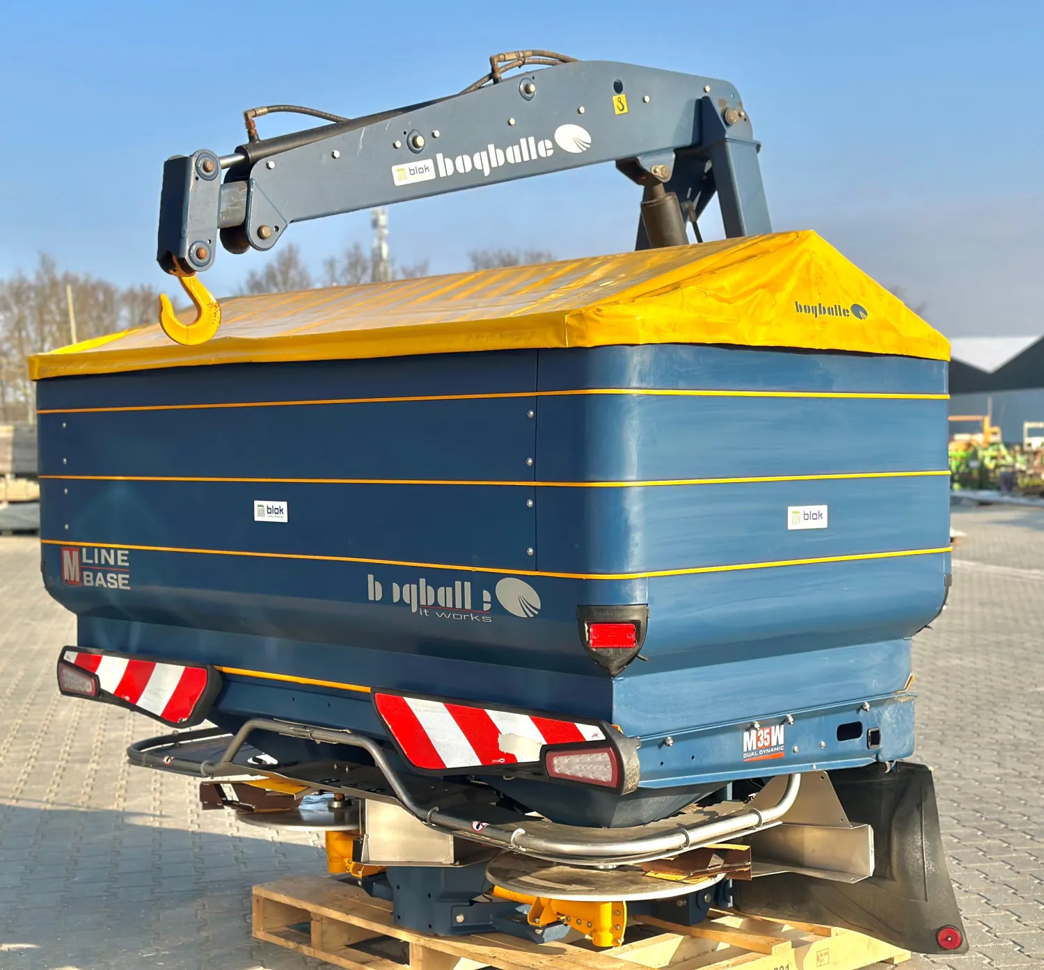 Bogballe M35 weegstrooier - Bouwjaar 2021 - Sectie control - Isobus uitgerust - Dubbele strooischijf - RVS strooischijven, bodemplaat en geleidingsplaten - Afdekzeil - Afdraai-unit - Weeginrichting - Strooicomputer - Kantstrooi inrichting - Diverse schoepen sets - zonder haak arm kraan