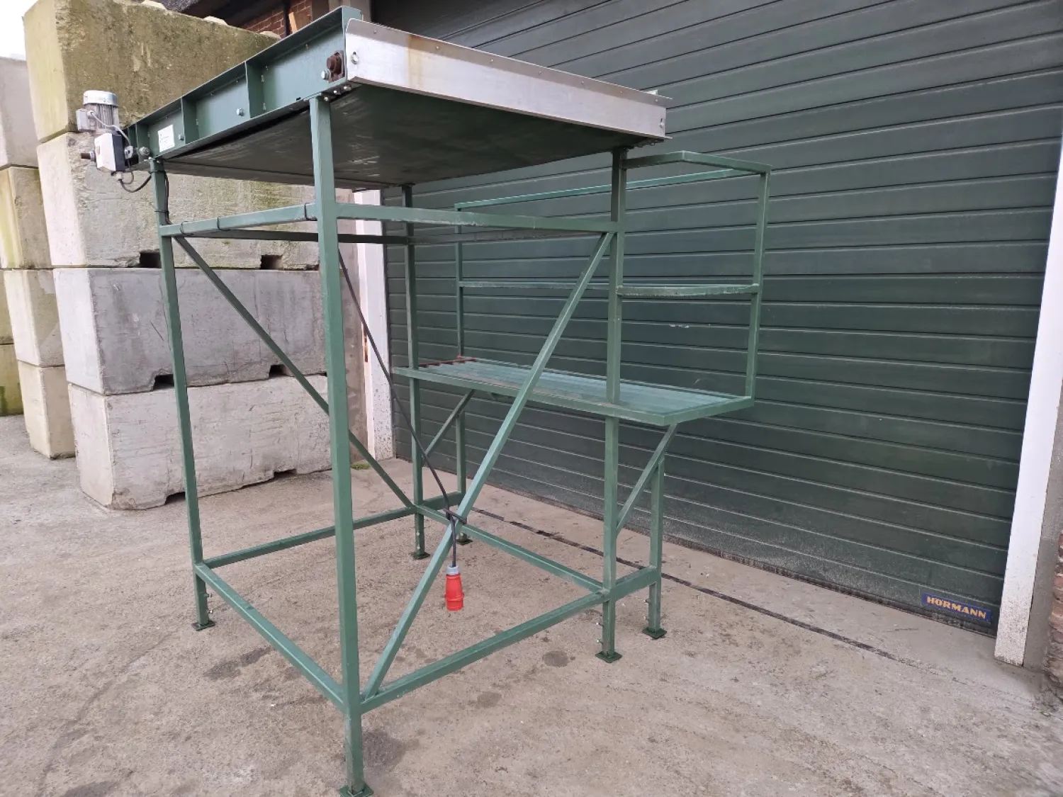 Schouten Bercomex Transportband ✔210x110cm ✔Nette eindloze PVC band ✔Nette kantstrookafdichting ✔Voorzien van thermische beveiliging ✔Op verhoogd onderstel met bordes ✔In zeer goede staat✅️ 📽Filmpje draaiende machine op aanvraag beschikbaar! 📞Neem snel contact op